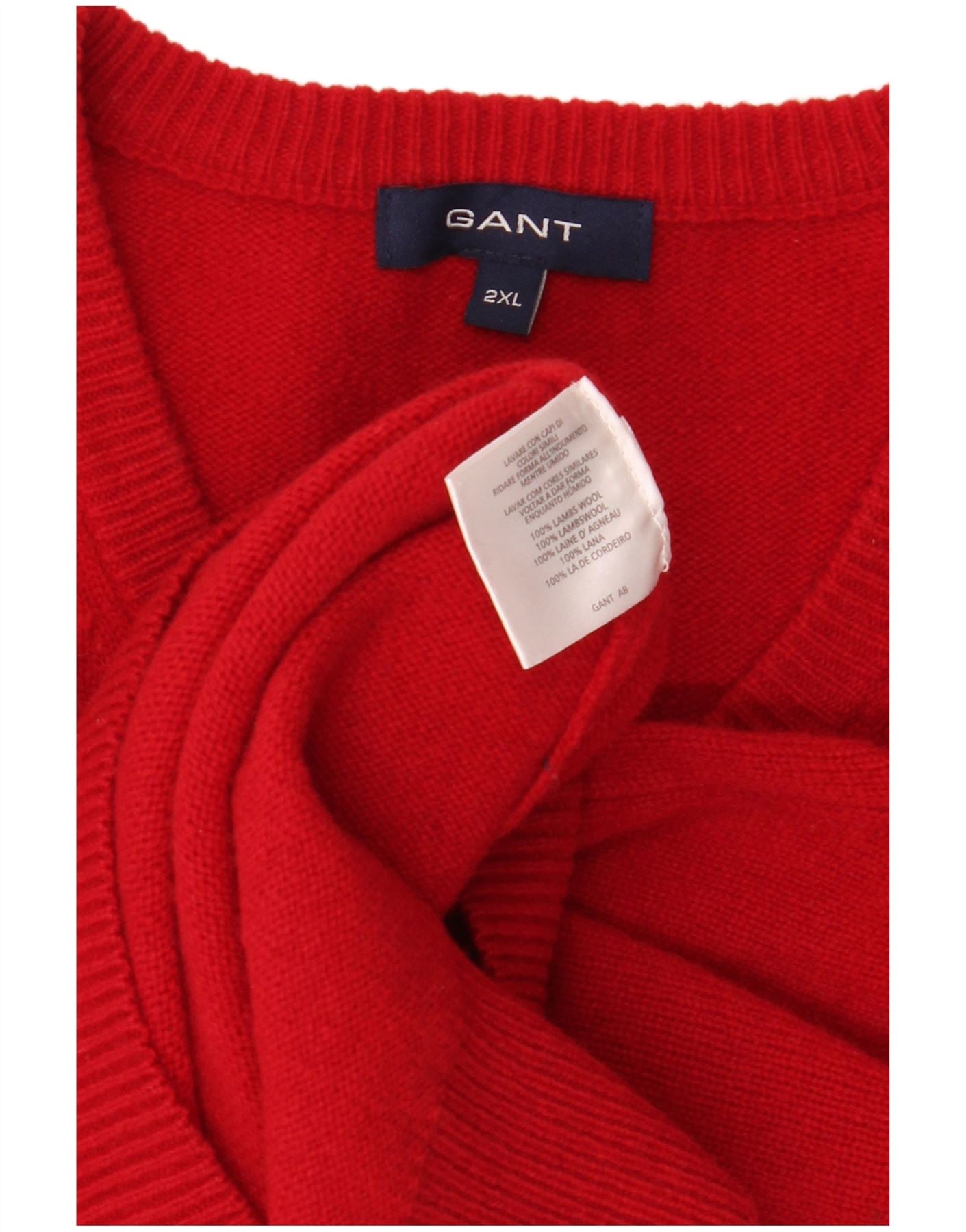 GANT Herren-Pullover mit V-Ausschnitt, 2XL, rote Lammwolle