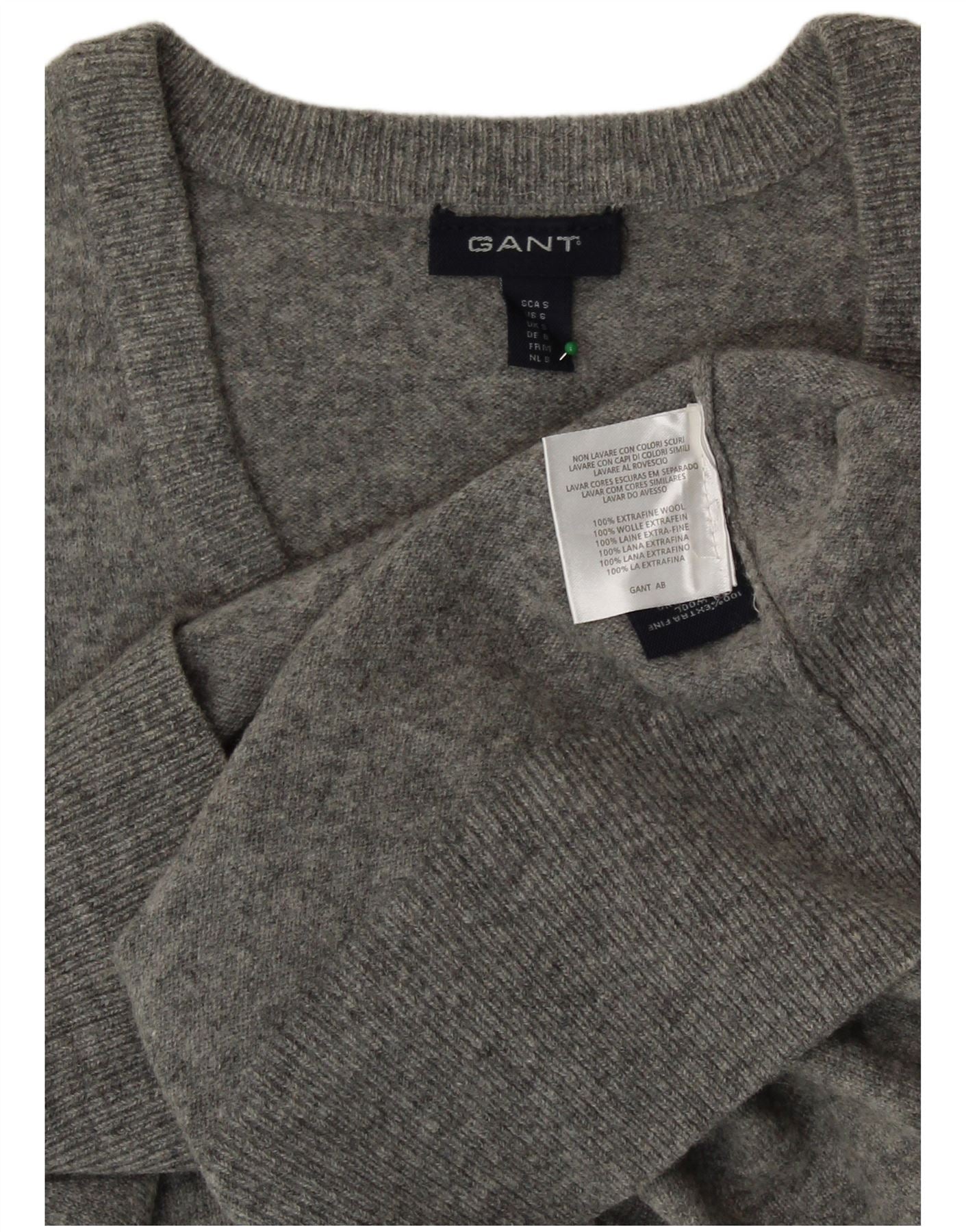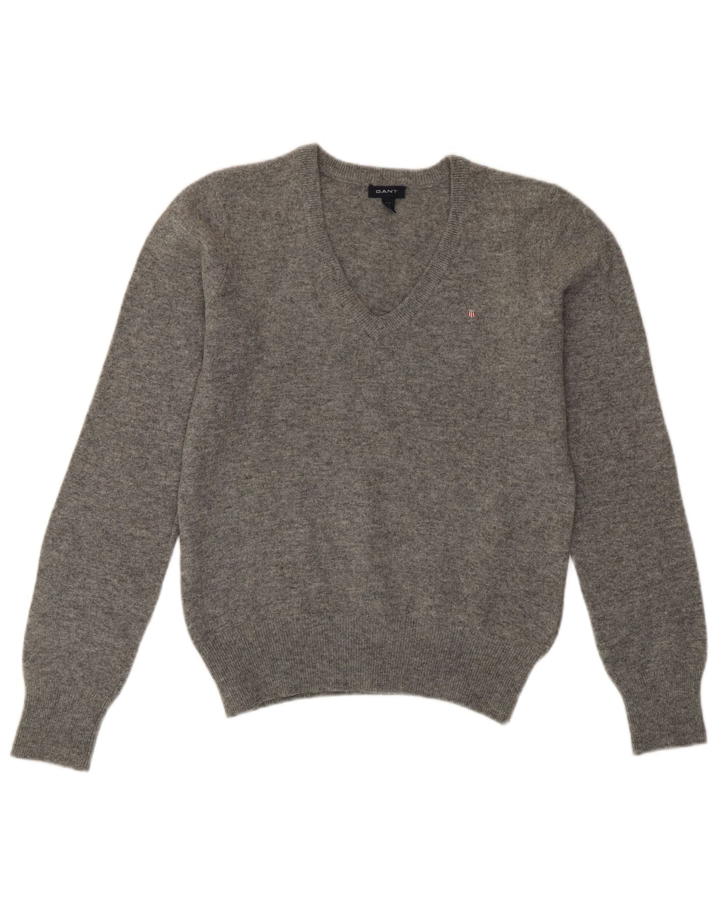 GANT Damen Crop V-Ausschnitt Pullover Pullover UK 10 Small Graue Wolle