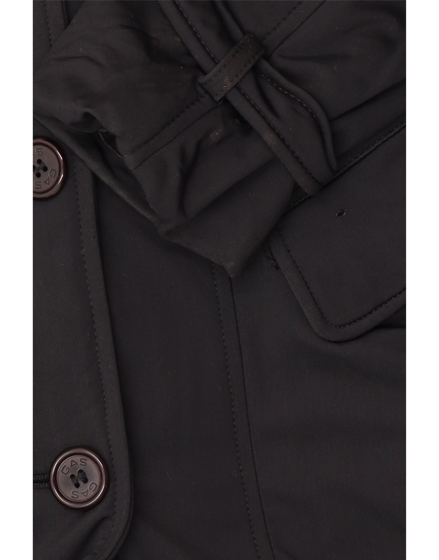 GAS Damen Zweireihiger Trenchcoat UK 10 Small Schwarz Polyamid