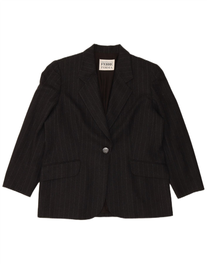 GIANFRANCO FERRE Womens 1 Button Blazer Jacket UK 18 XL Black Striped