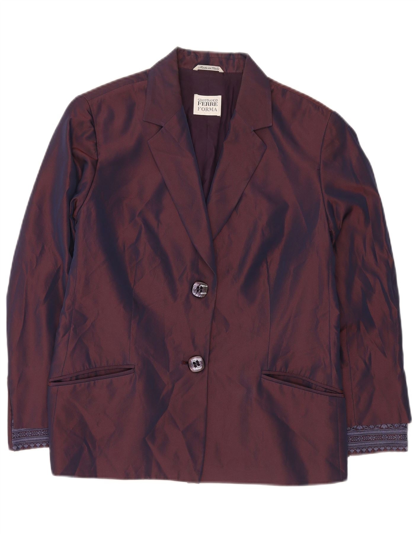 GIANFRANCO FERRE Damen 2-Knopf-Blazerjacke UK 16 Großes lila Blumenmuster