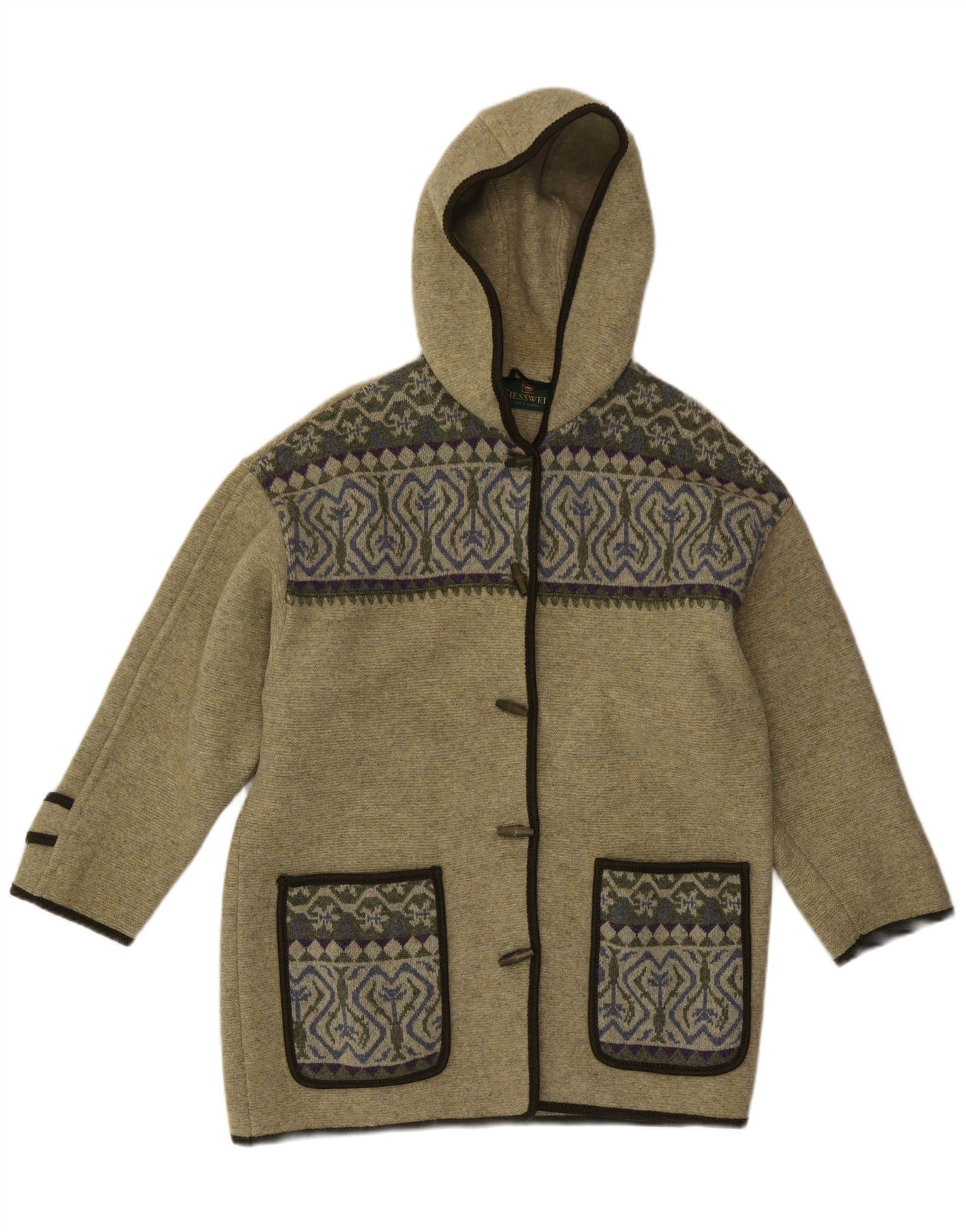 Home > Damen > Depop-Kleidung > GIESSWEIN Damen-Strickjacke mit Kapuze, UK 14, Größe L, Grün, Fair Isle