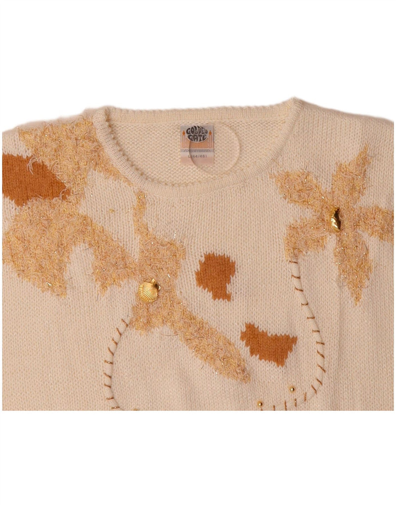 GOLDEN GATE Womens Crew Neck Jumper Sweater IT 44/46 Large Off White