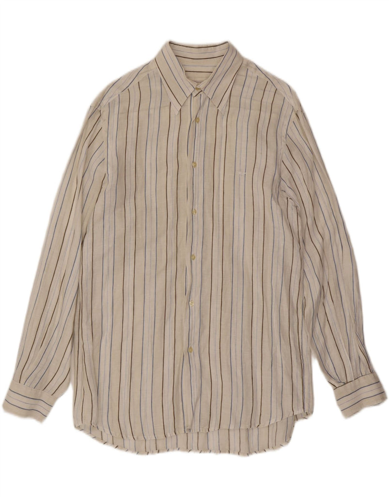 GOOSE & GANDER Herrenhemd IT 50 Mittelweiß gestreiftes Leinen