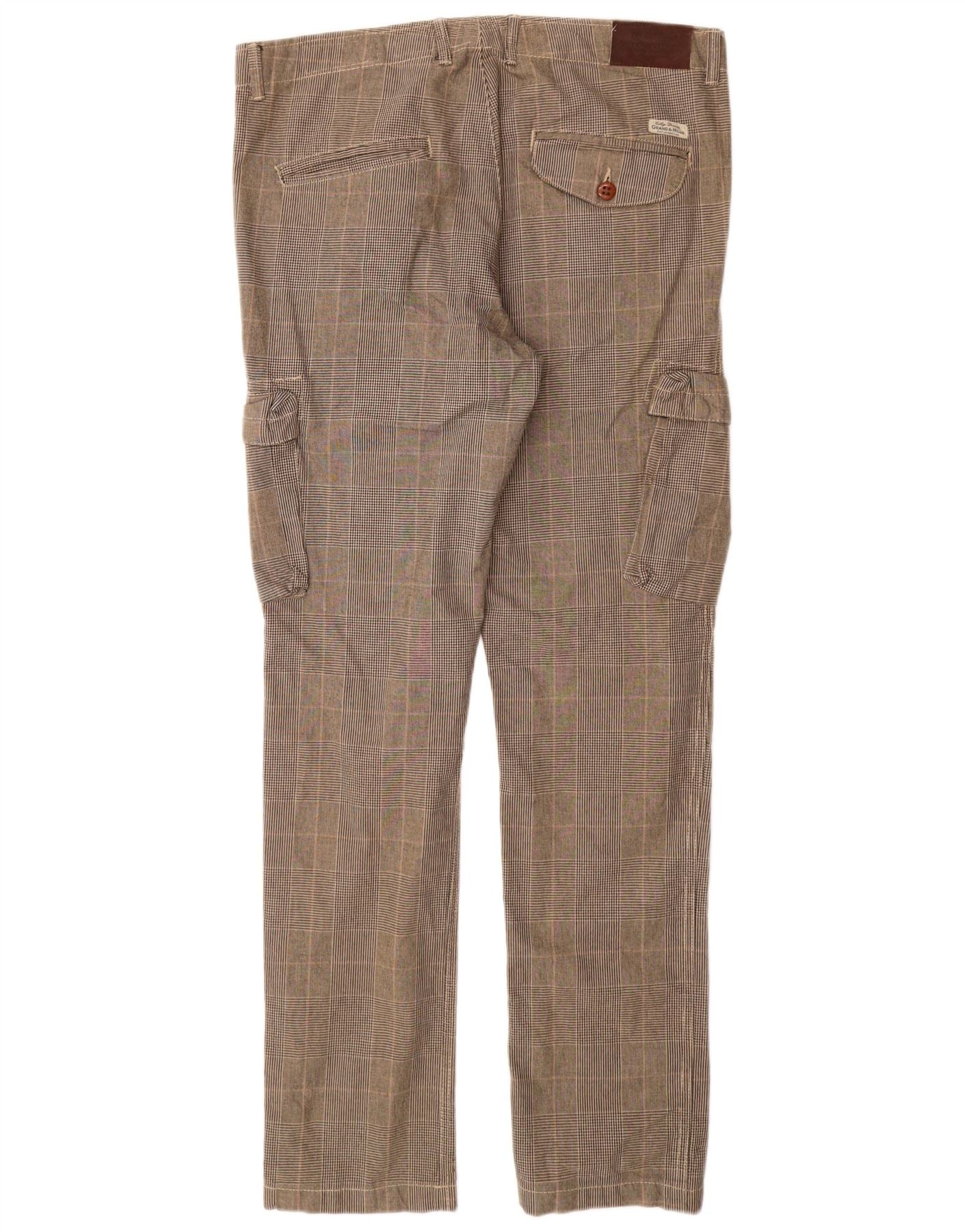 GRAND & HILLS Herren Slim Cargohose IT 50 Large W34 L33 Grau kariert
