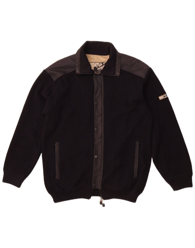 GREEN COAST Herren-Strickjacke IT 58 2XL Marineblaue Merinowolle