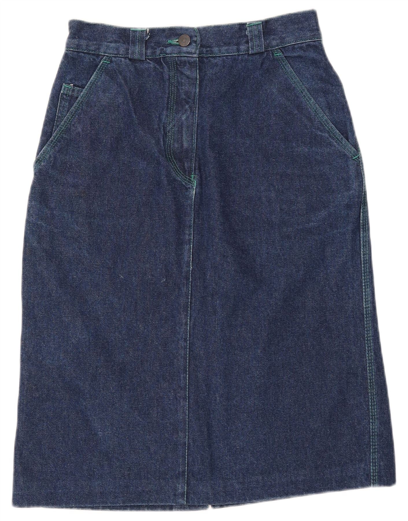 GREEN LEAVES Damen Jeansrock IT 44 Medium W26 Blaue Baumwolle