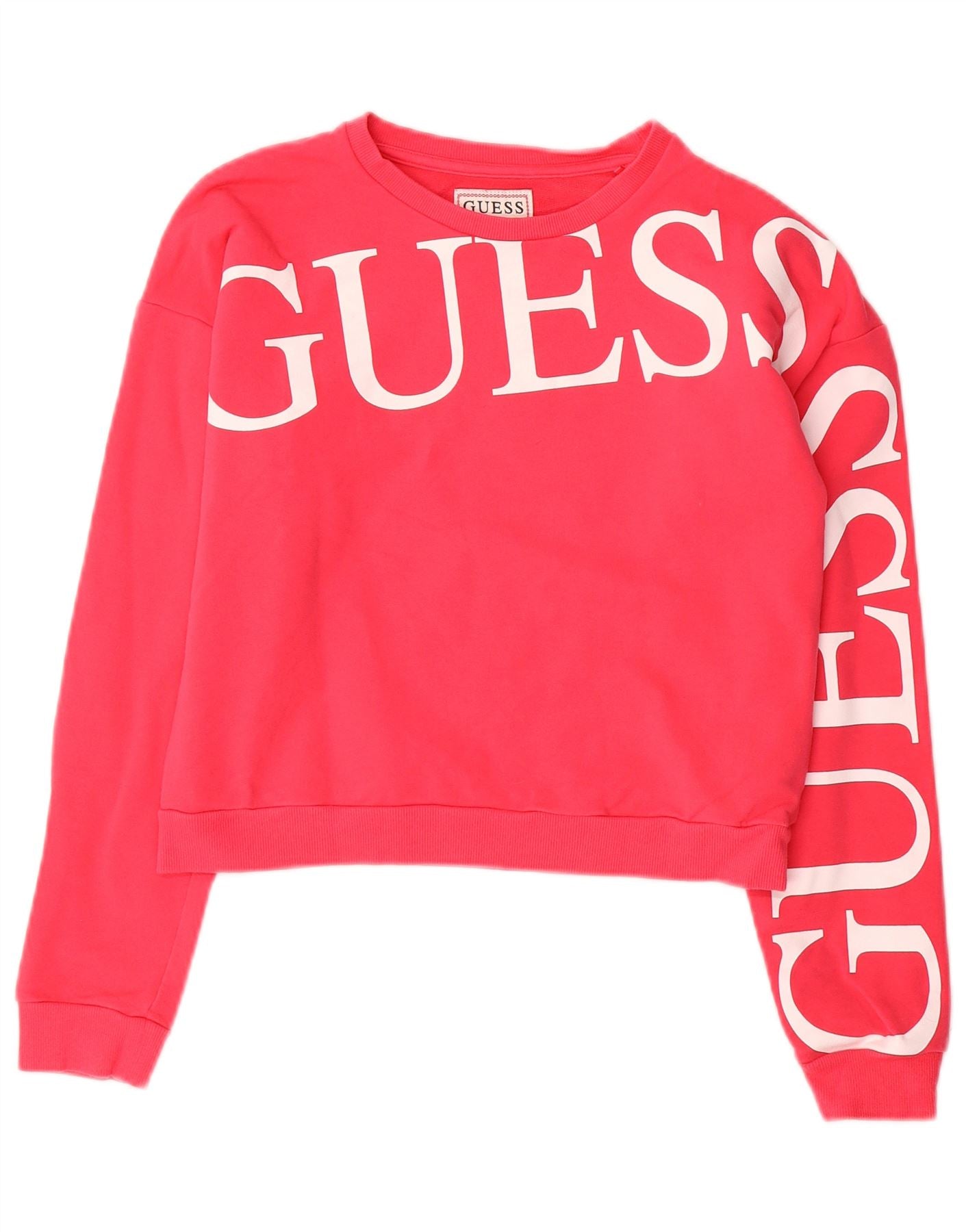 GUESS Crop Graphic Sweatshirt-Pullover für Mädchen, 13–14 Jahre, rosa Baumwolle