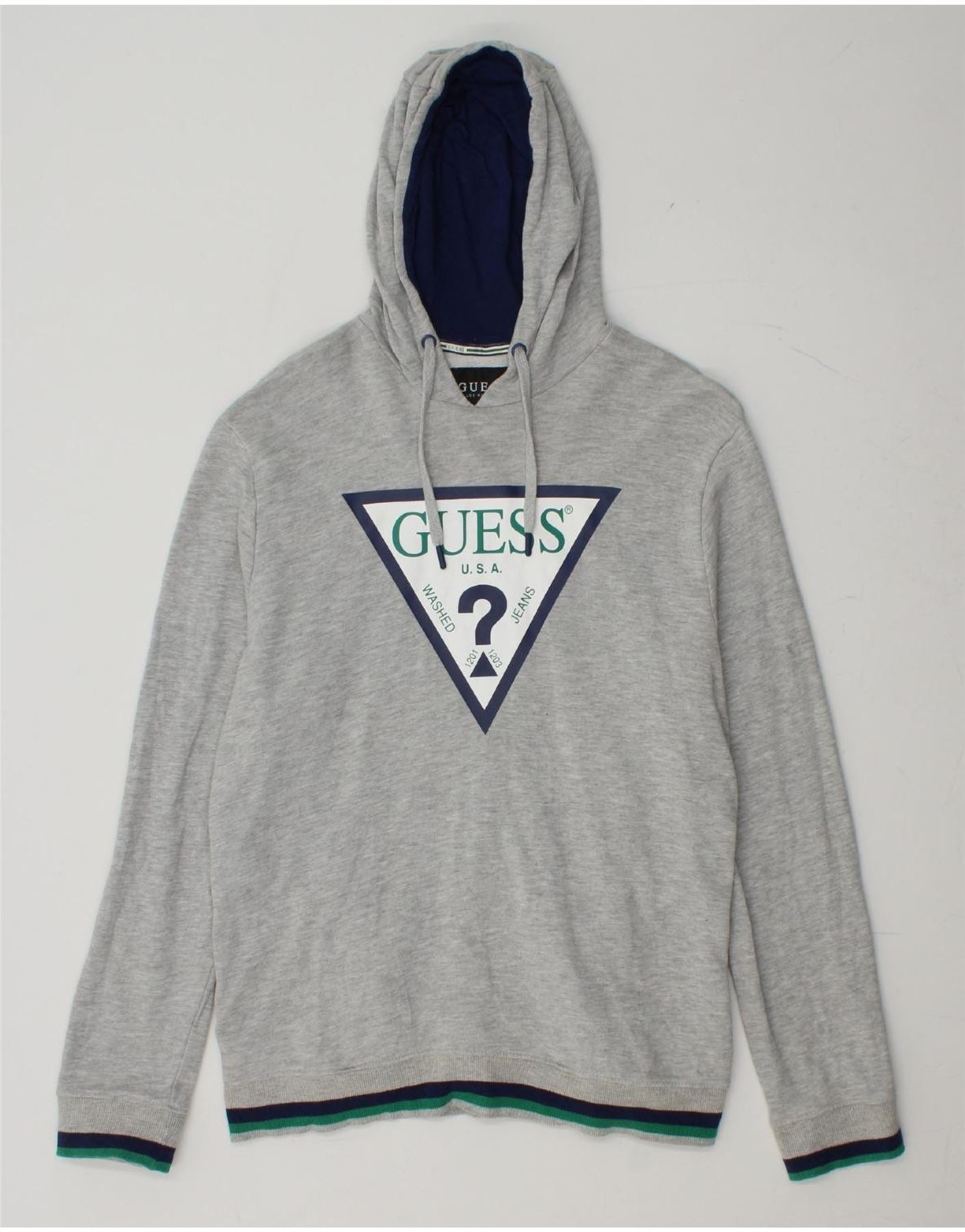 GUESS Herren-Kapuzenpullover mit Grafik, groß, graue Baumwolle