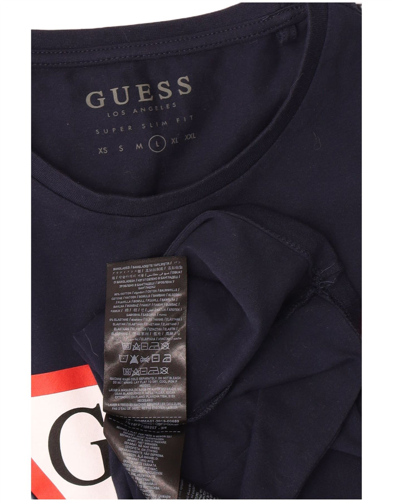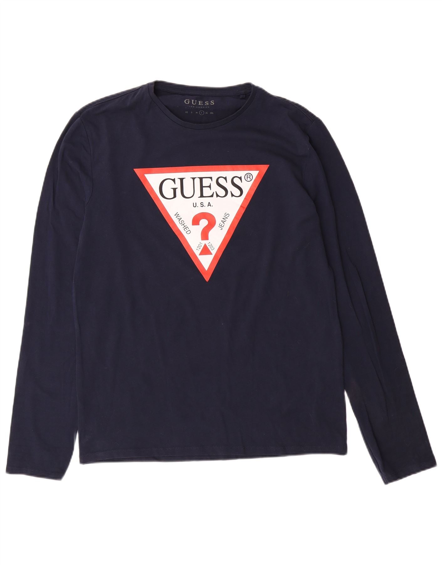 GUESS Herren-Grafik-Oberteil, langärmelig, groß, marineblau, Baumwolle
