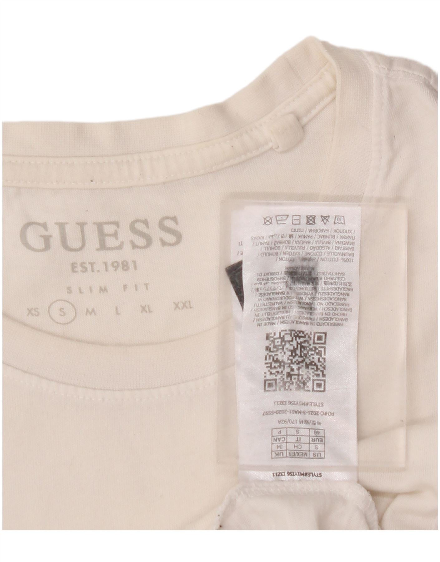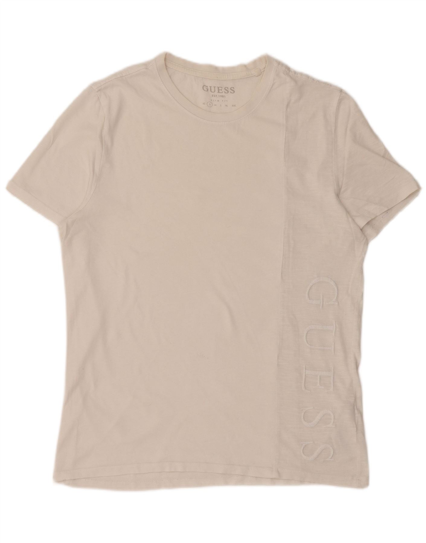 GUESS Herren-T-Shirt mit schmaler Passform, Grafik, Größe S, aus weißer Baumwolle