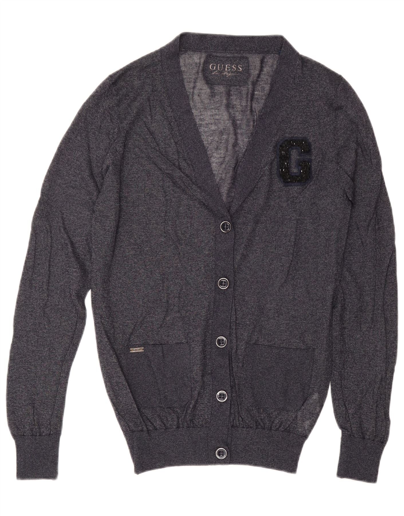 Guess Damen-Cardigan-Pullover UK 14 Mittelmarineblaue Viskose