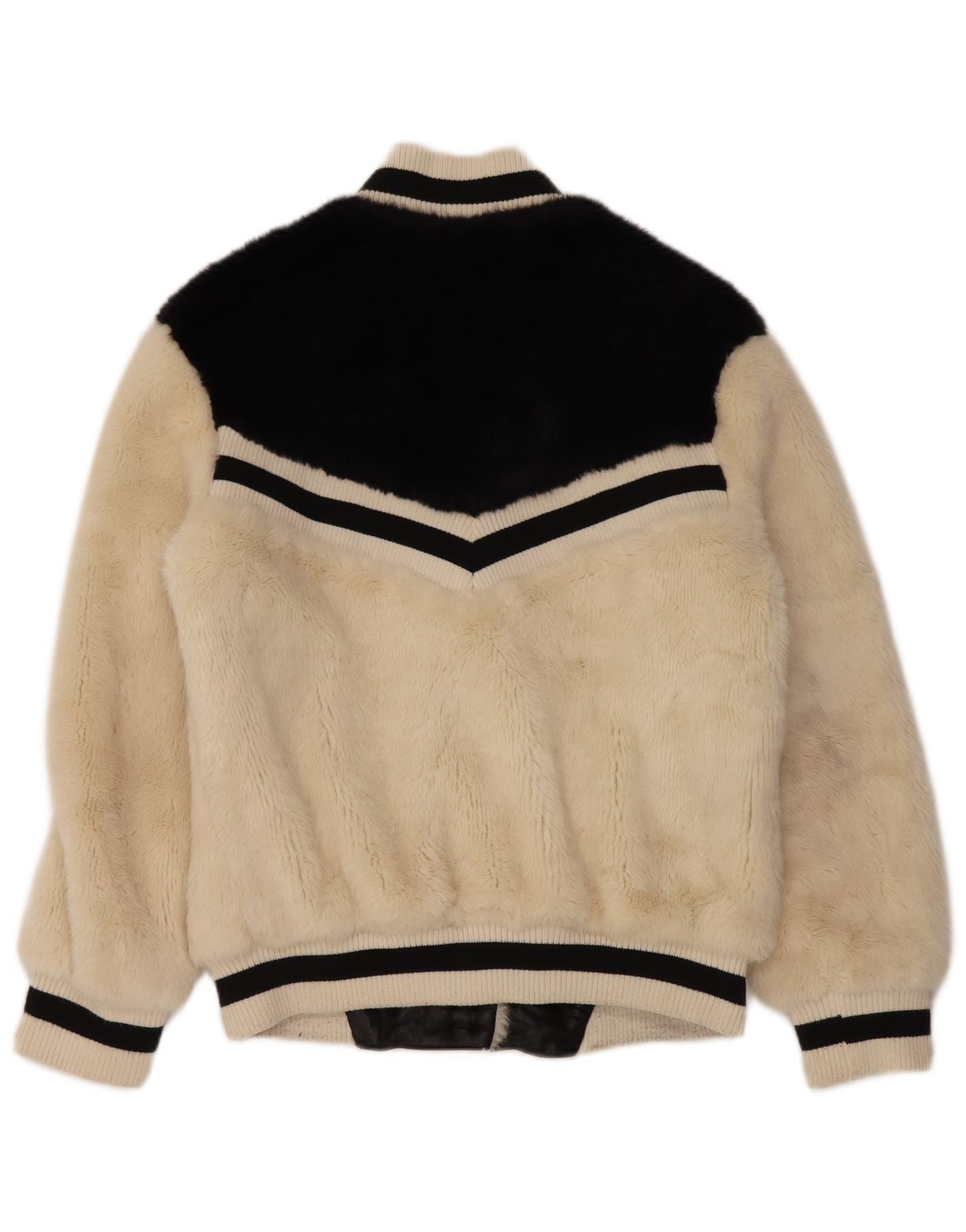 GUESS Damen-Bomberjacke aus Kunstpelz, UK 14, Mittelbeige, Farbblock-Acryl