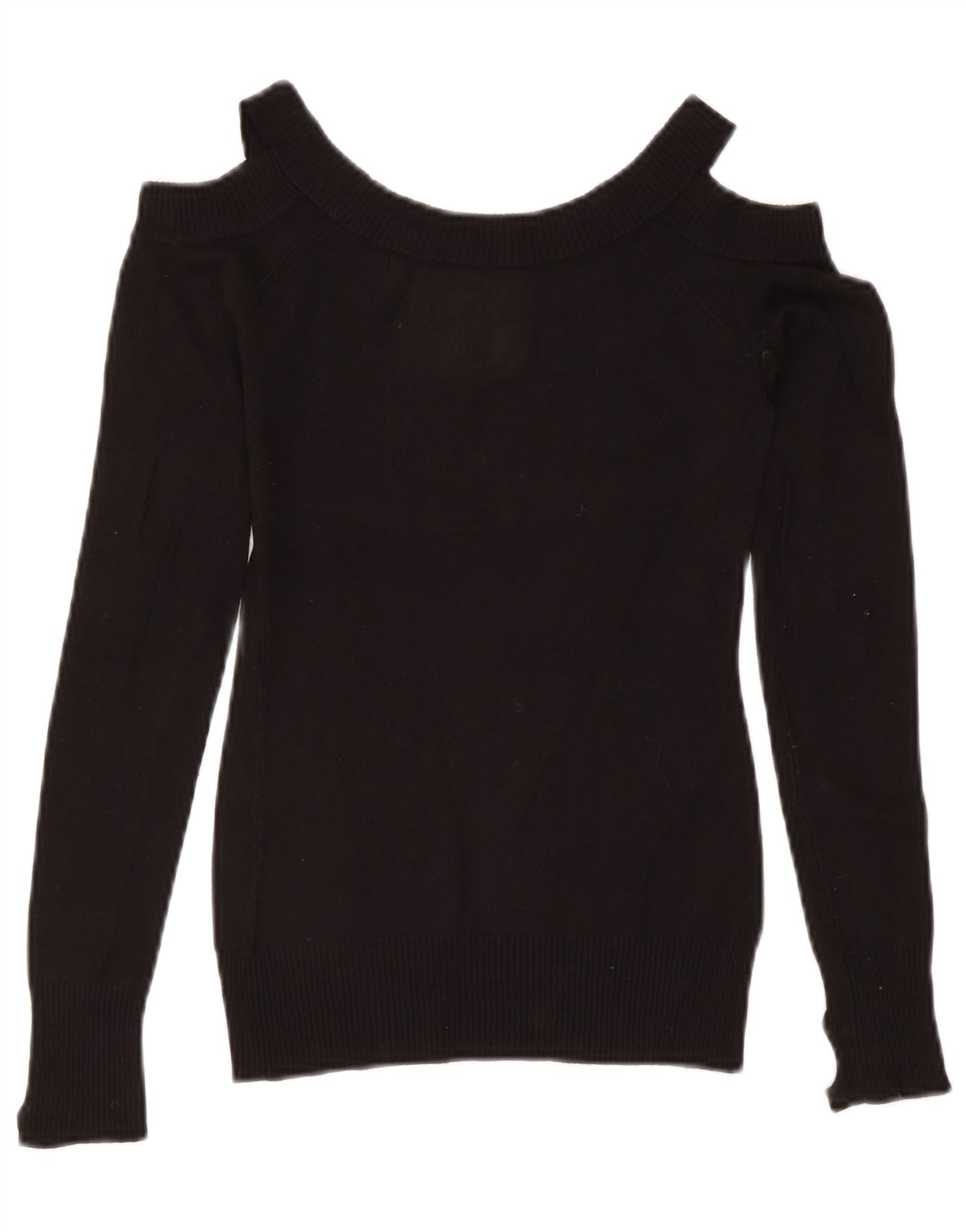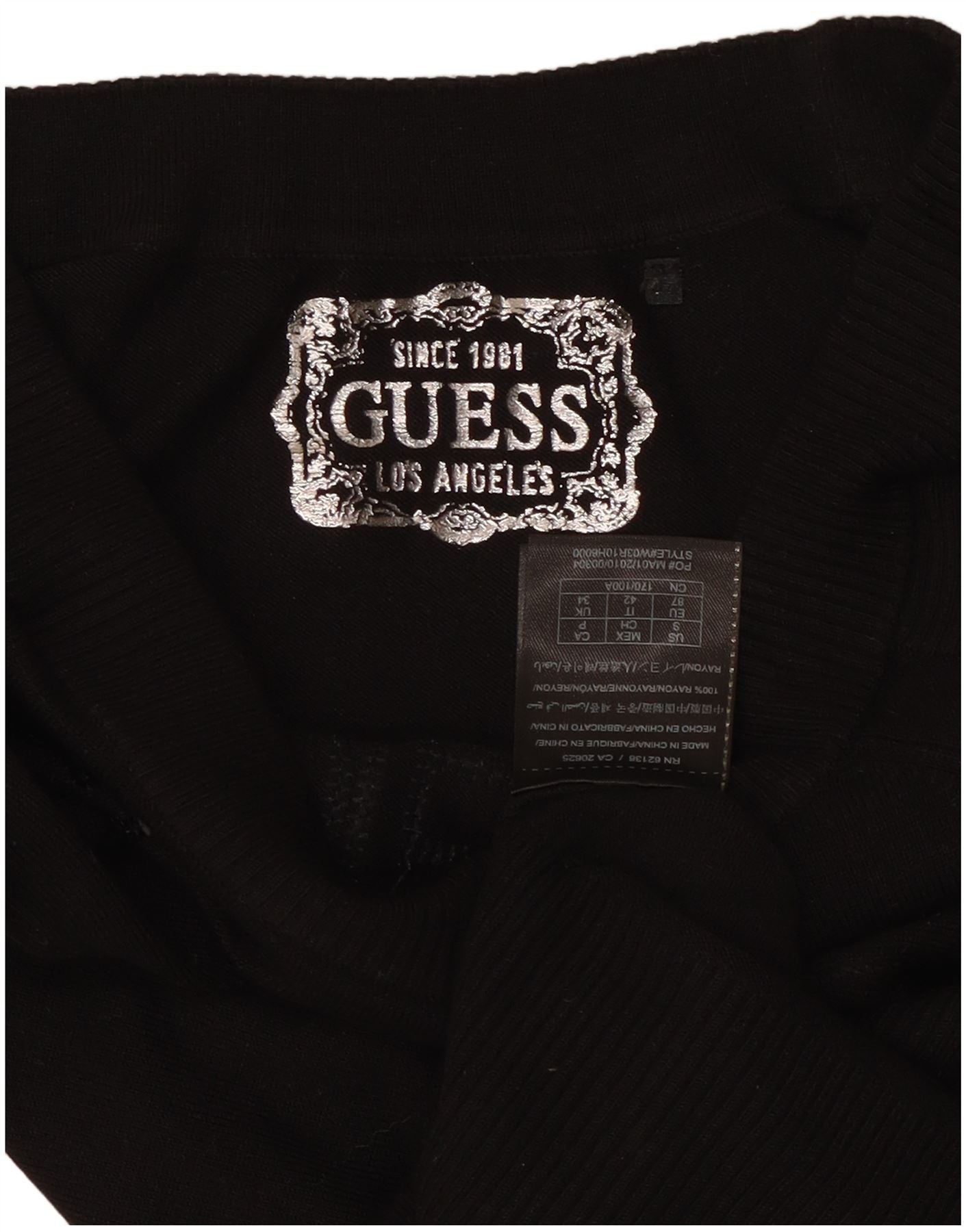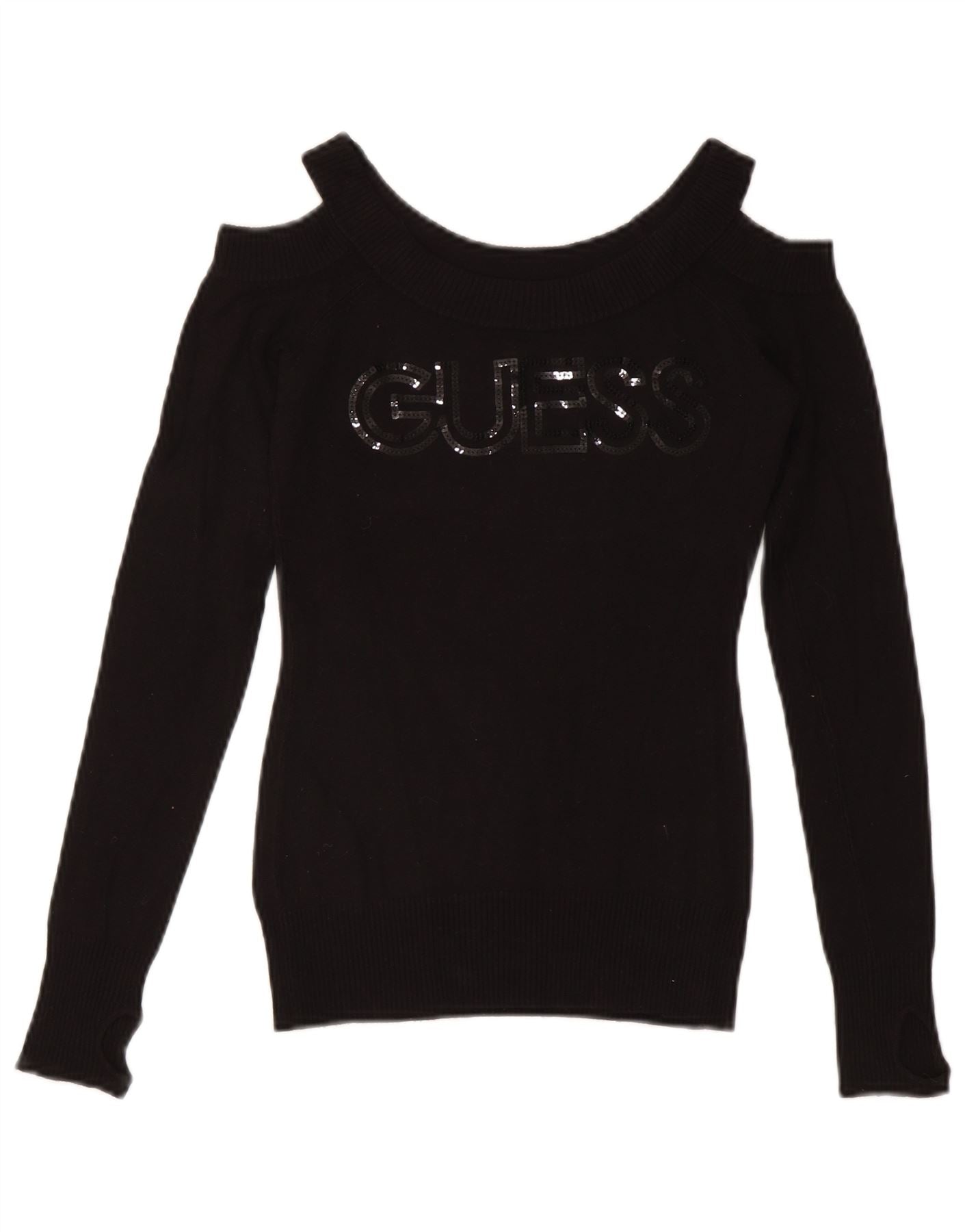 GUESS Damen Pullover mit grafischem U-Boot-Ausschnitt, Gr. 8, Schwarz