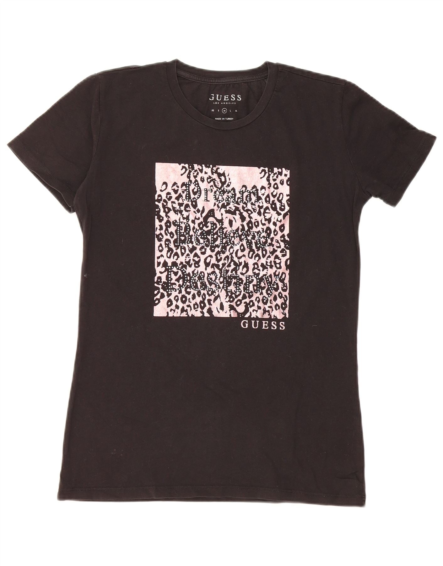 GUESS Damen Grafik T-Shirt Top UK 12 Medium Schwarz Baumwolle