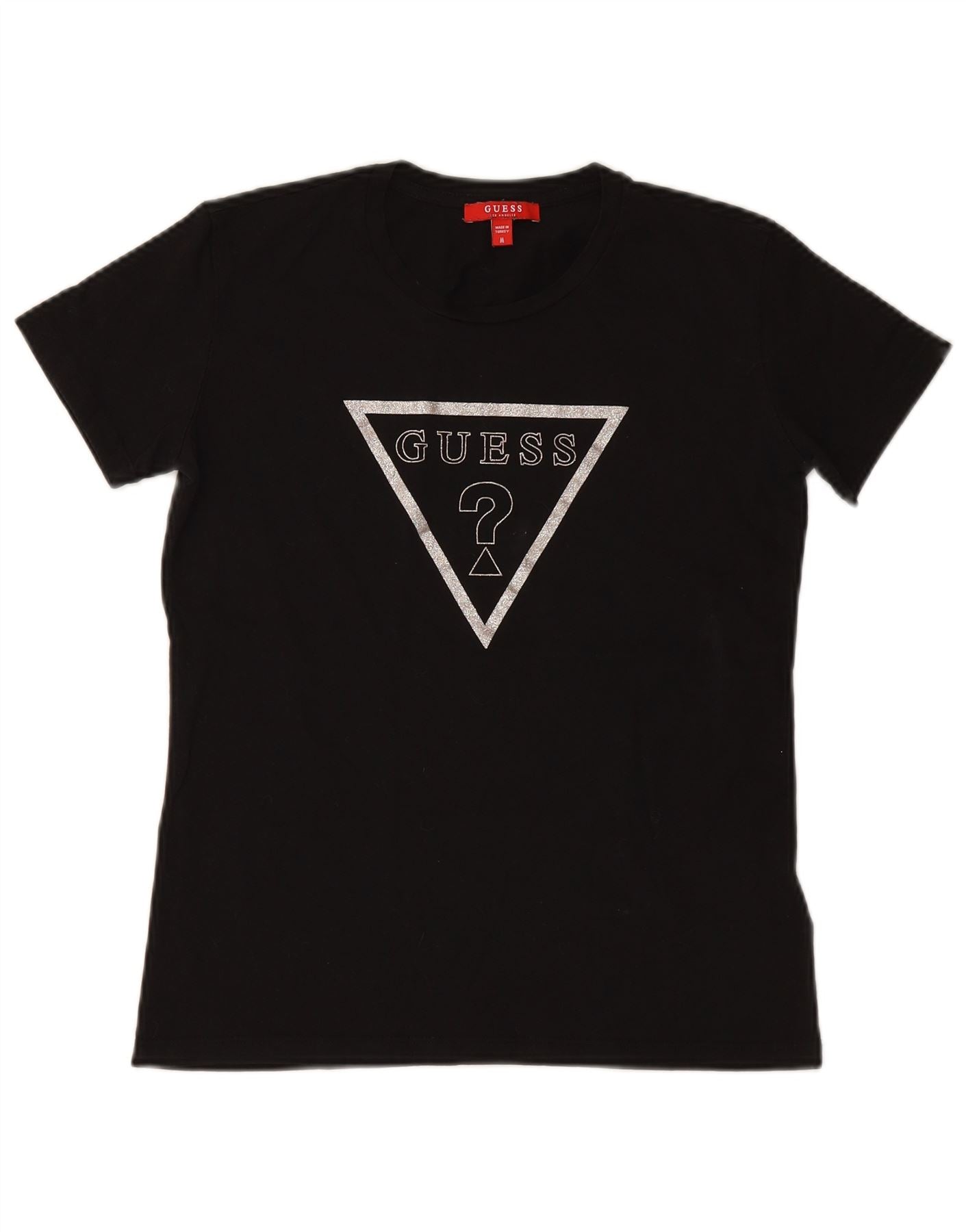 GUESS Damen Grafik T-Shirt Top UK 12 Medium Schwarz Baumwolle