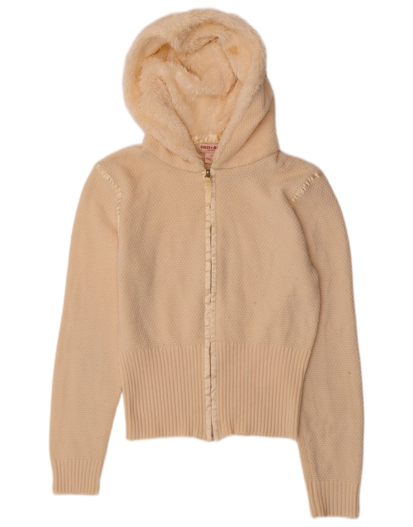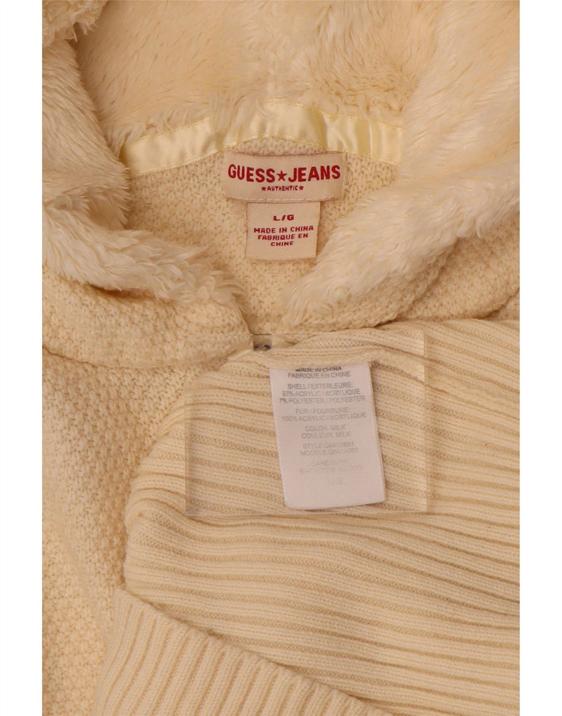 GUESS Damen-Strickjacke mit Kapuze, UK 14, Größe L, gebrochenes Weiß, Acryl