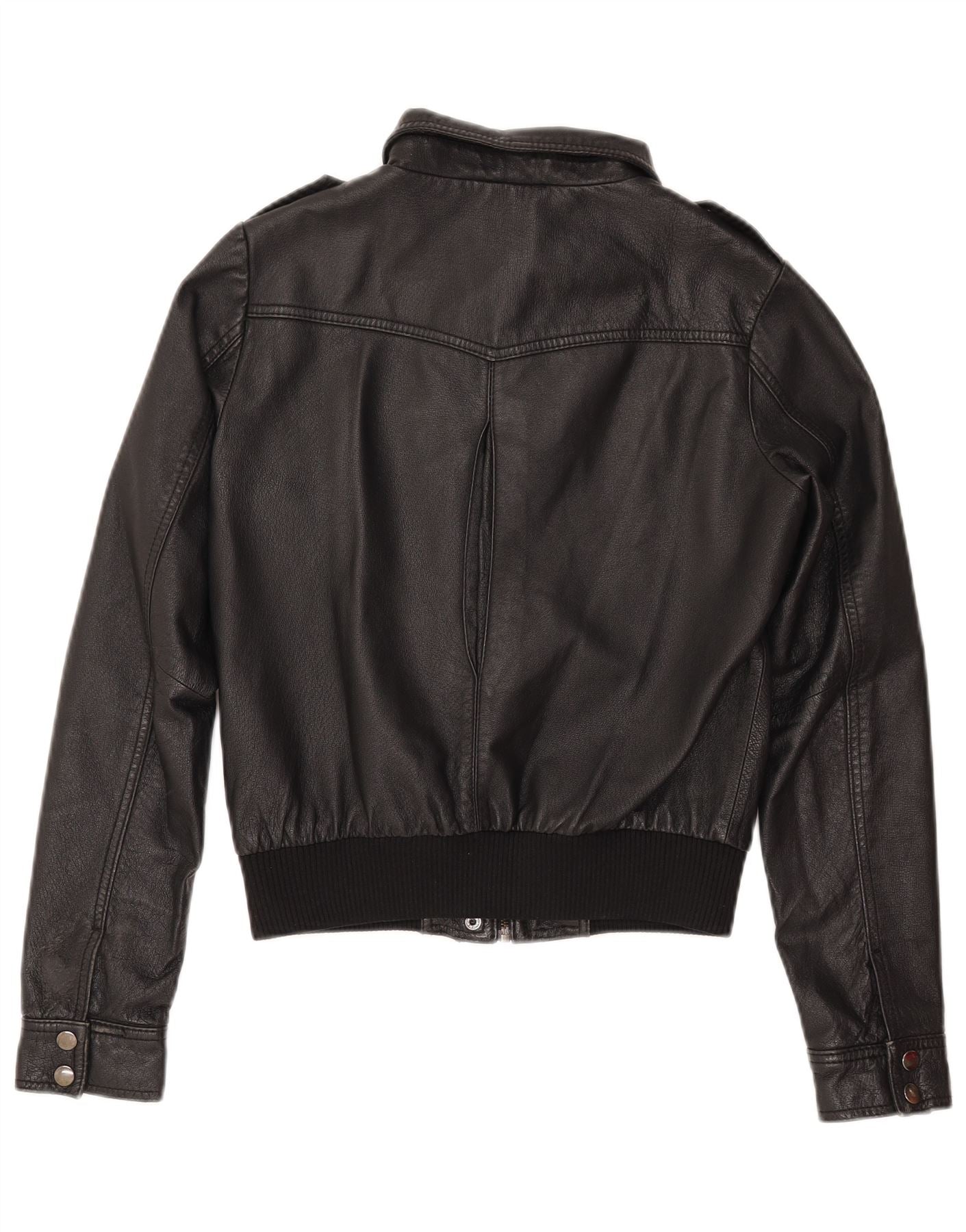 H&M Damen Crop Lederjacke EU 38 Mittelschwarzes Leder