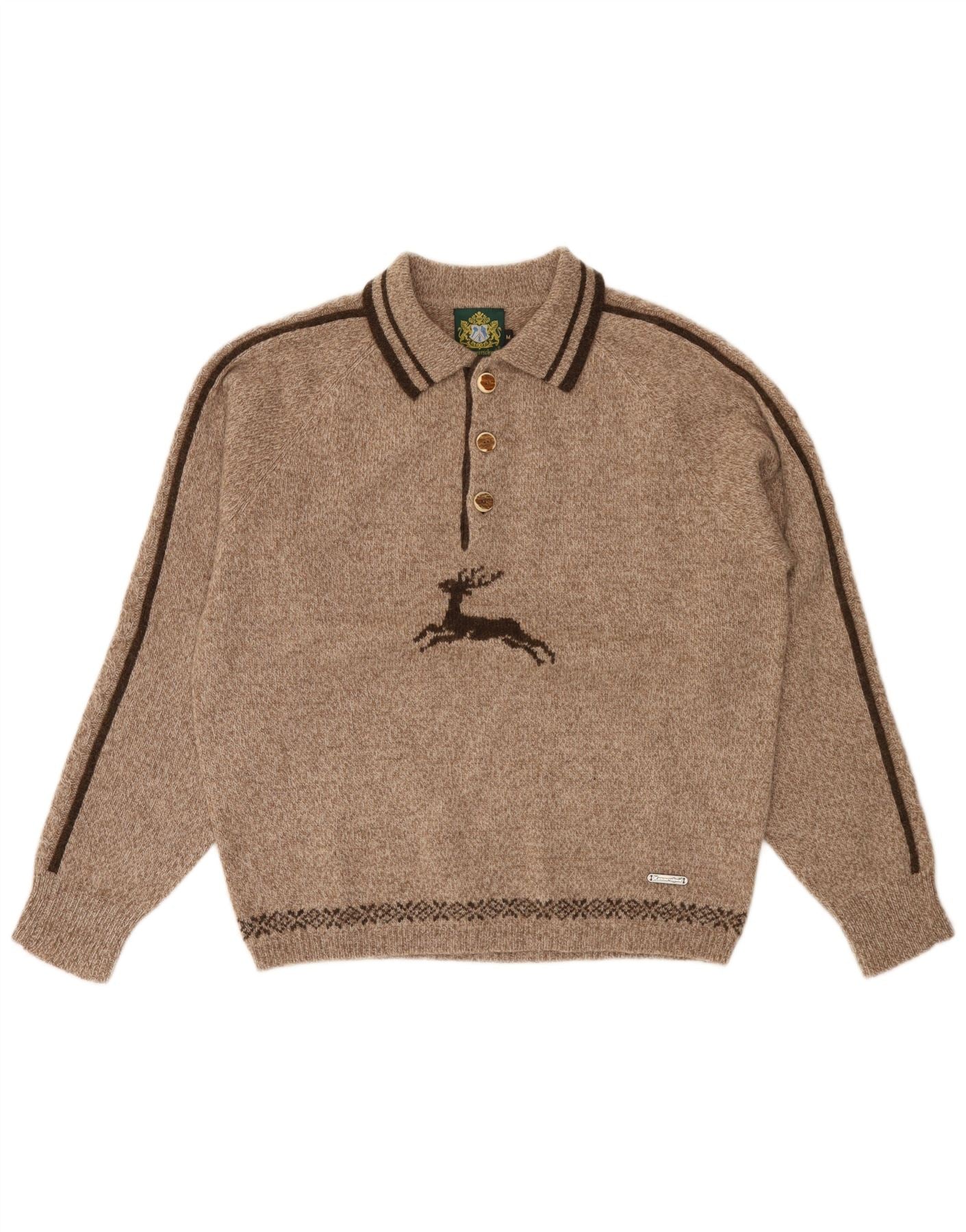HAMMERSCHMID Herren-Pullover mit grafischem Polo-Ausschnitt, mittelbraun gefleckt