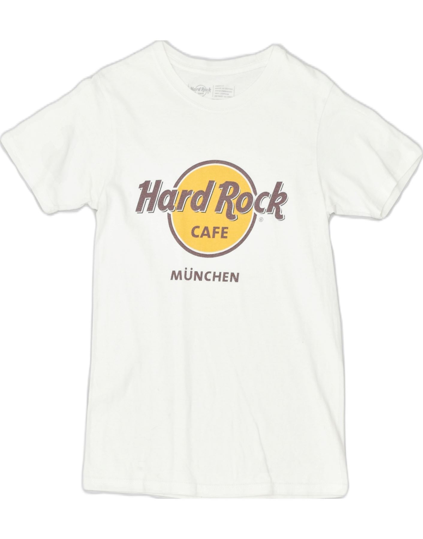 HARD ROCK CAFE Damen Munich Graphic T-Shirt Top UK 6 XS Weiße Baumwolle