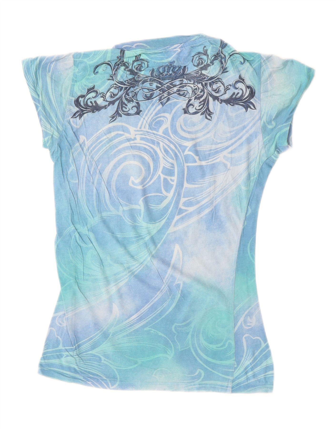 HARD ROCK CAFE Damen Couture Grafik T-Shirt Top UK 8 Small Blue Tie Dye