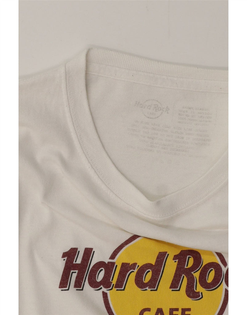 HARD ROCK CAFE Damen Miami Graphic T-Shirt Top UK 12 Mittelweiße Baumwolle