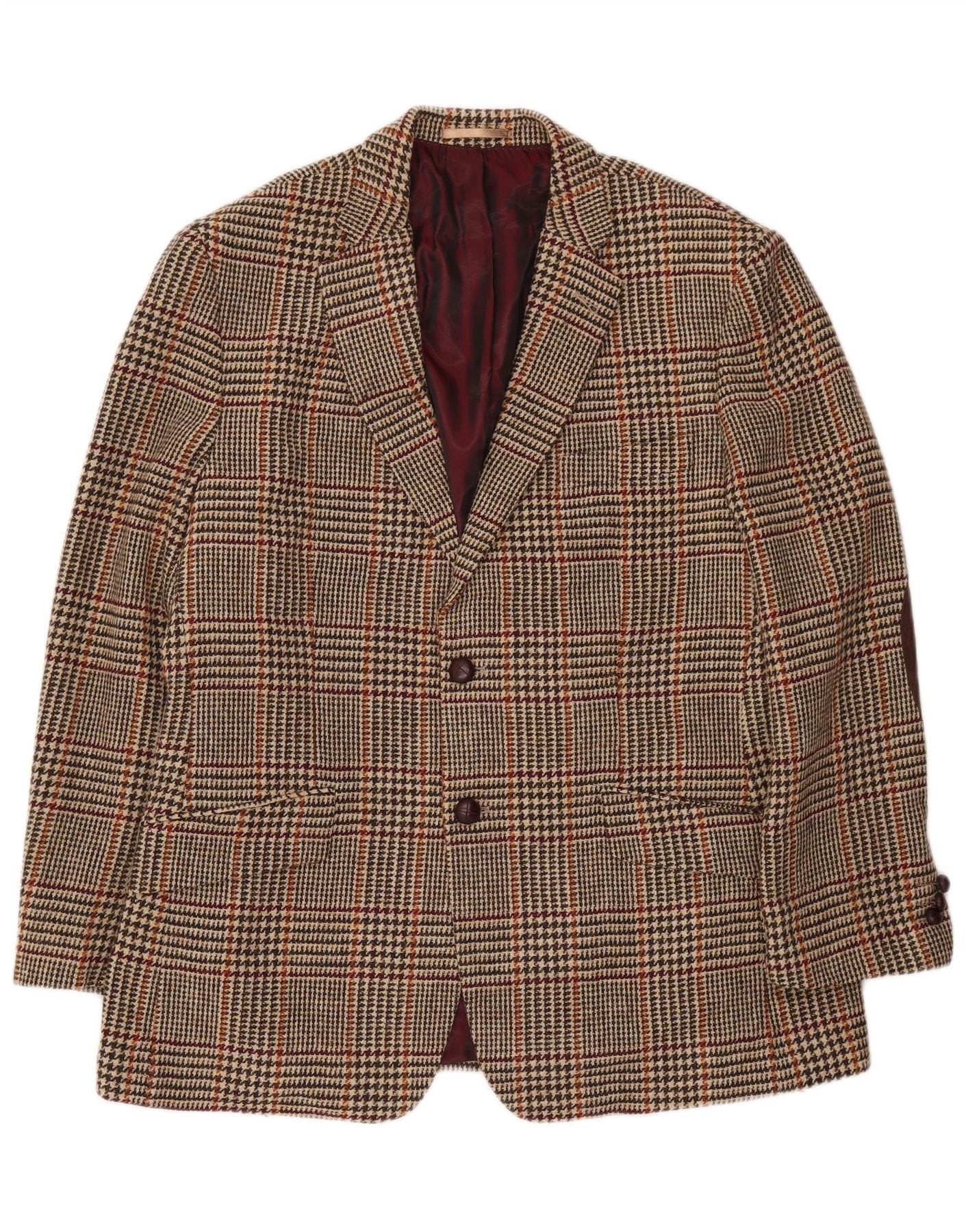 HARRIS TWEED Mens 2 Button Blazer Jacket UK 42 XL Brown Houndstooth Wool