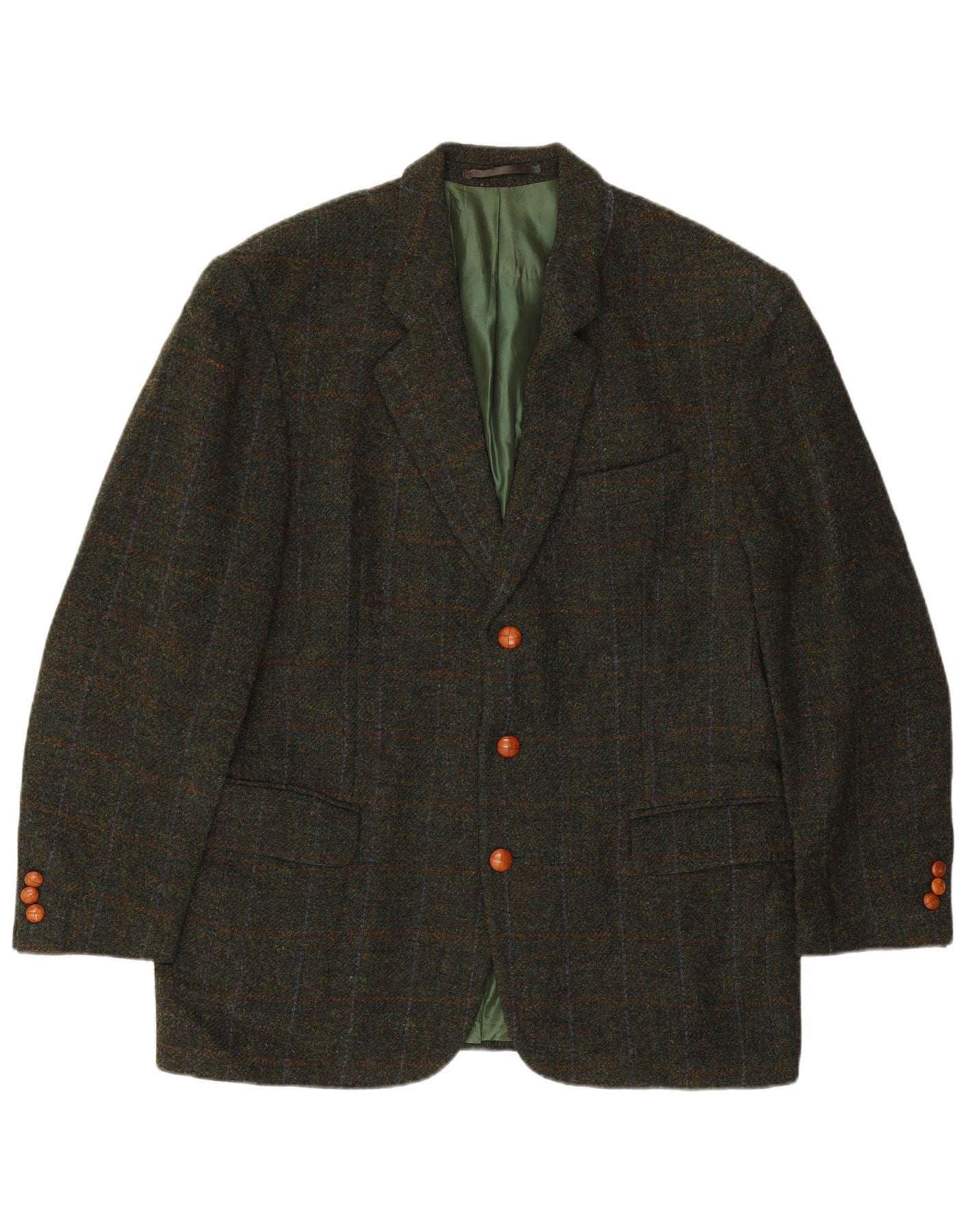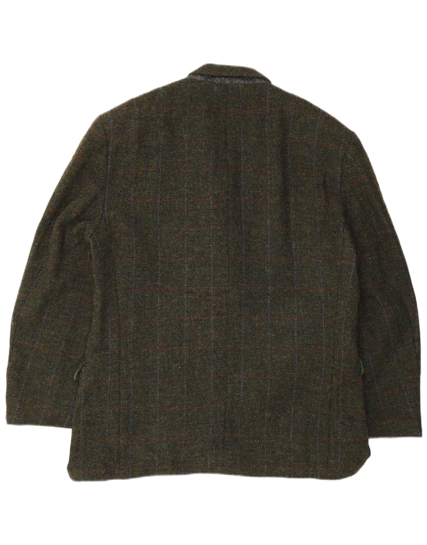 HARRIS TWEED Mens 3 Button Blazer Jacket UK 40 Large Khaki Check Wool