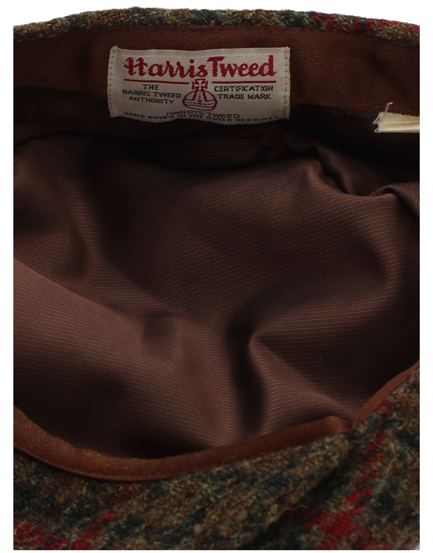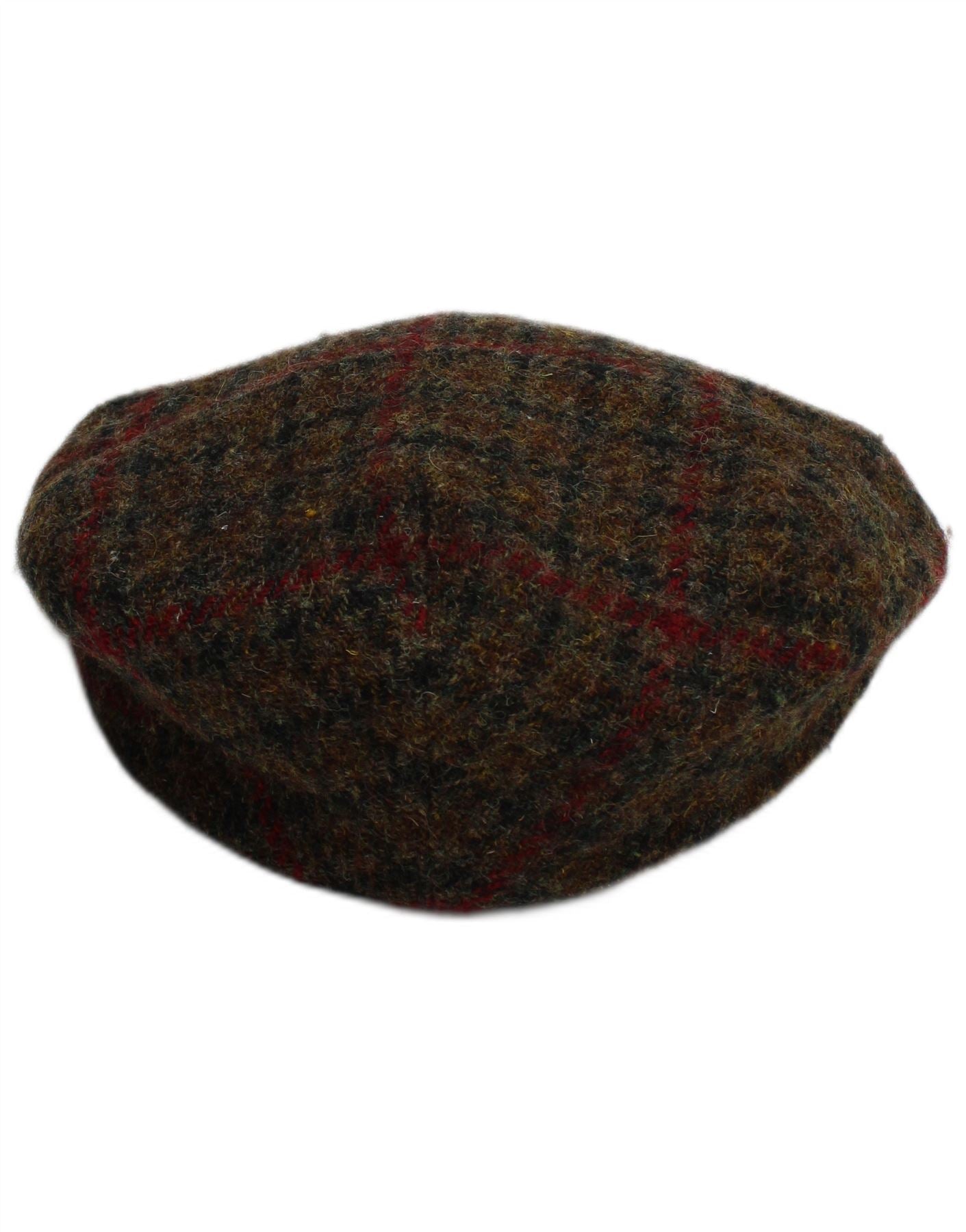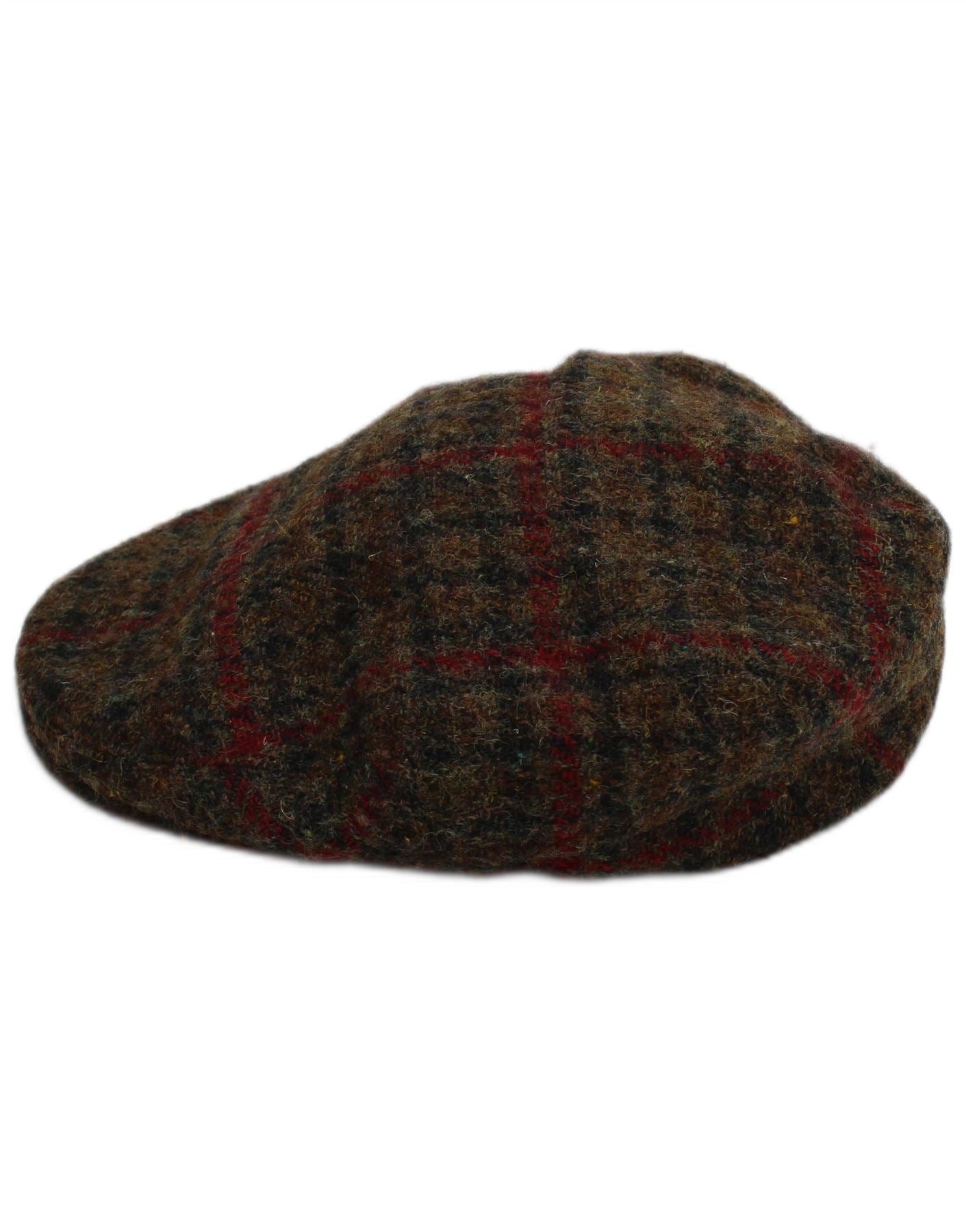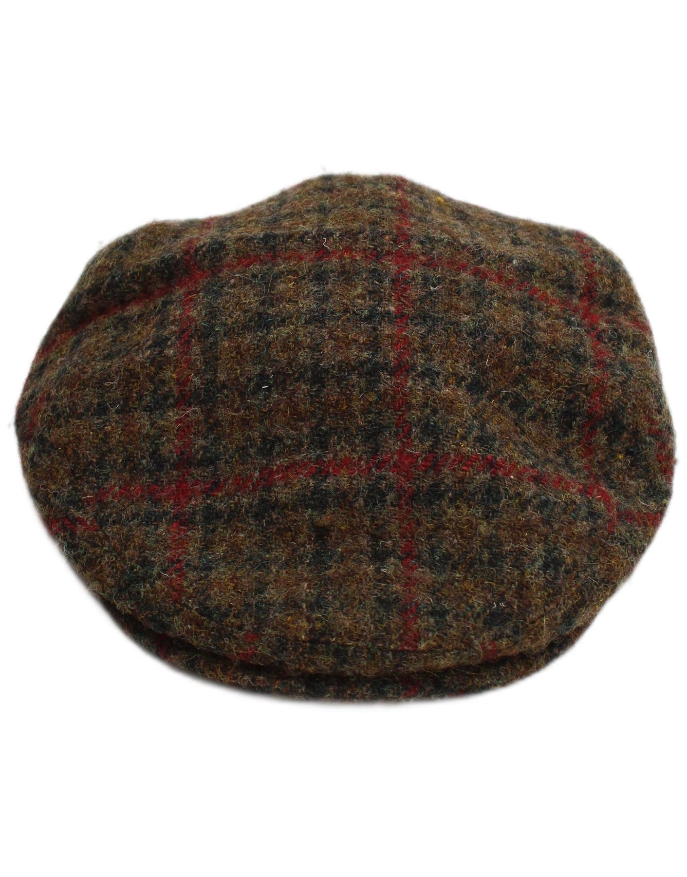 HARRIS TWEED Mens Geometrical Flat Cap Medium Khaki Houndstooth Classic