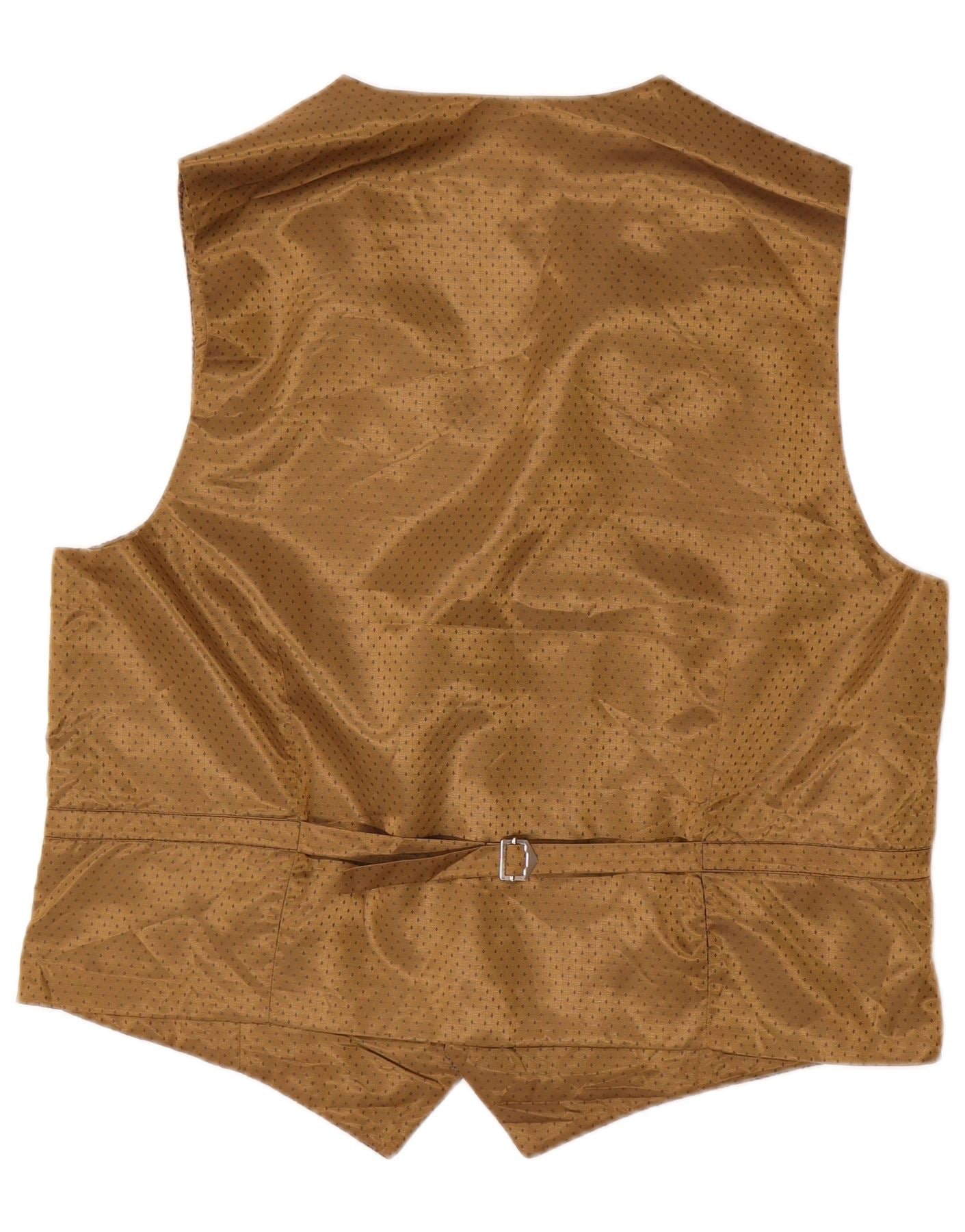 HARRIS TWEED Mens Waistcoat XL Brown Herringbone Wool