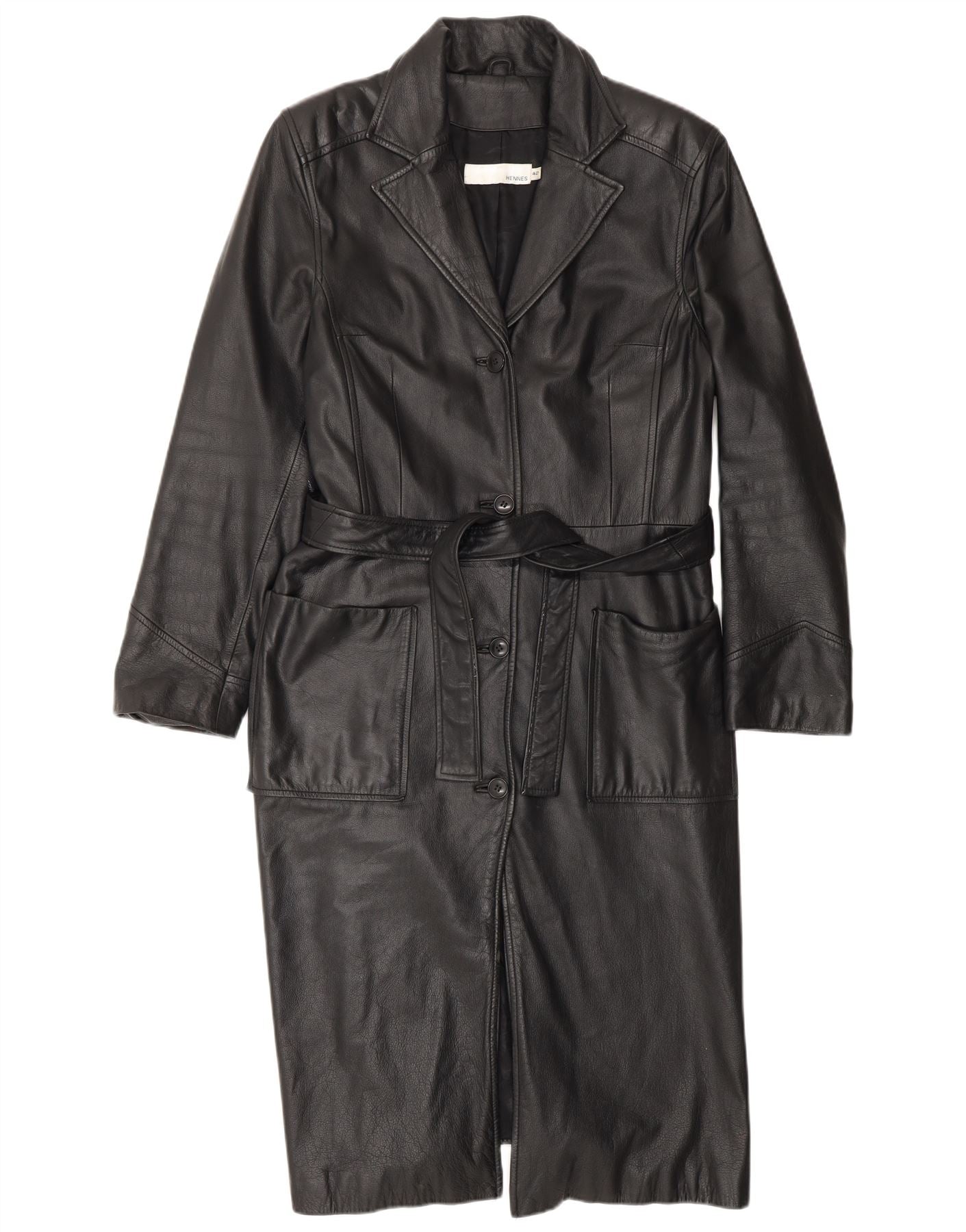 HENNES Damen Ledermantel EU 42 Großes schwarzes Leder