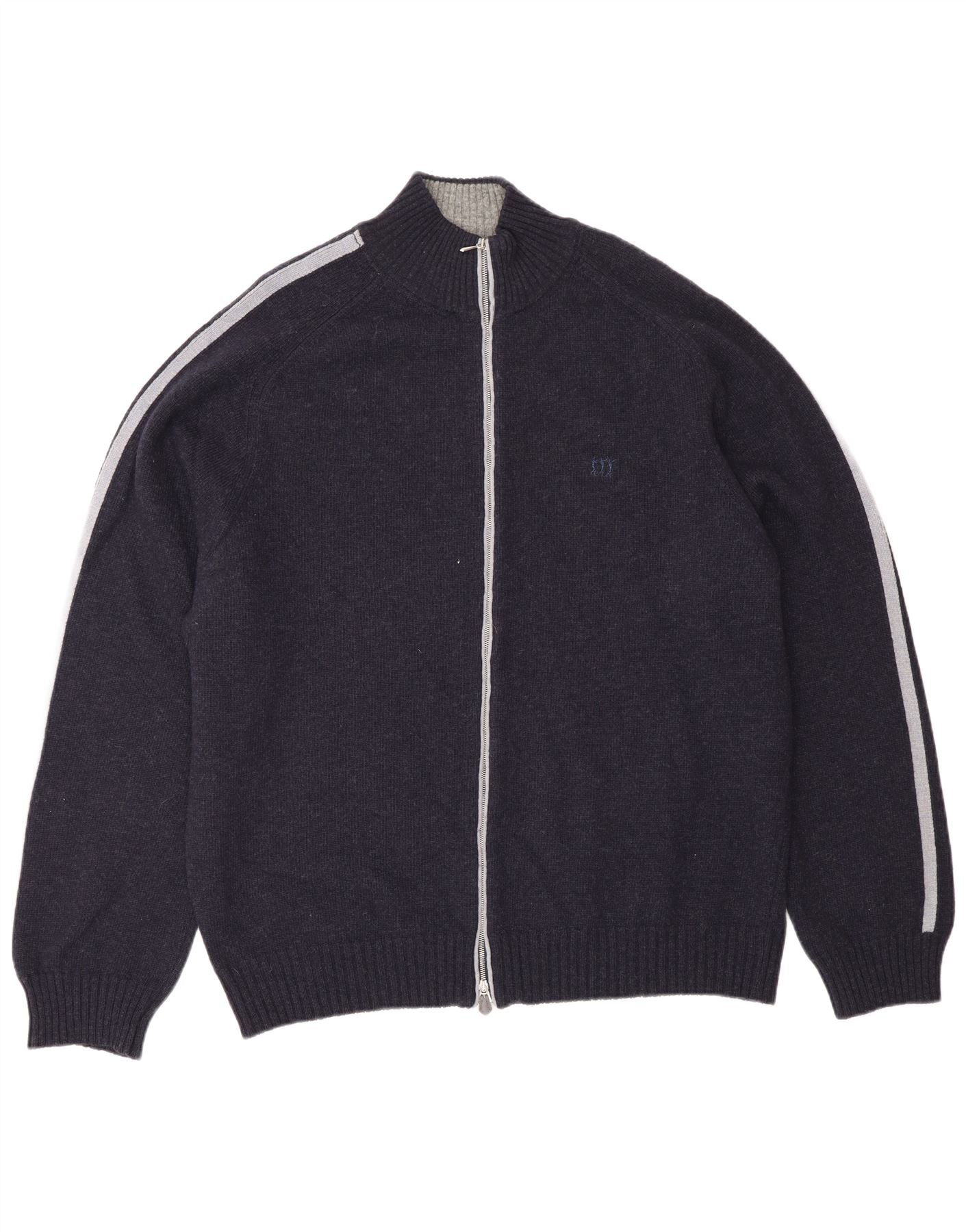 - KI-Beschreibung: Dieser Herren-Cardigan von Henry Cottons ist zu 100 Prozent aus reiner Schurwolle gefertigt und bietet eine luxuriöse Strickstruktur. Es hat einen satten Marineblauton mit markanten grauen Streifen entlang der langen Ärmel. Der Kragenausschnitt und der durchgehende Reißverschluss sorgen für einen klassischen, vielseitigen Look. Eine reguläre Passform sorgt für angenehmen Tragekomfort. Dieses Stück kombiniert Wärme mit raffiniertem Stil und eignet sich perfekt für den Lagenlook.
