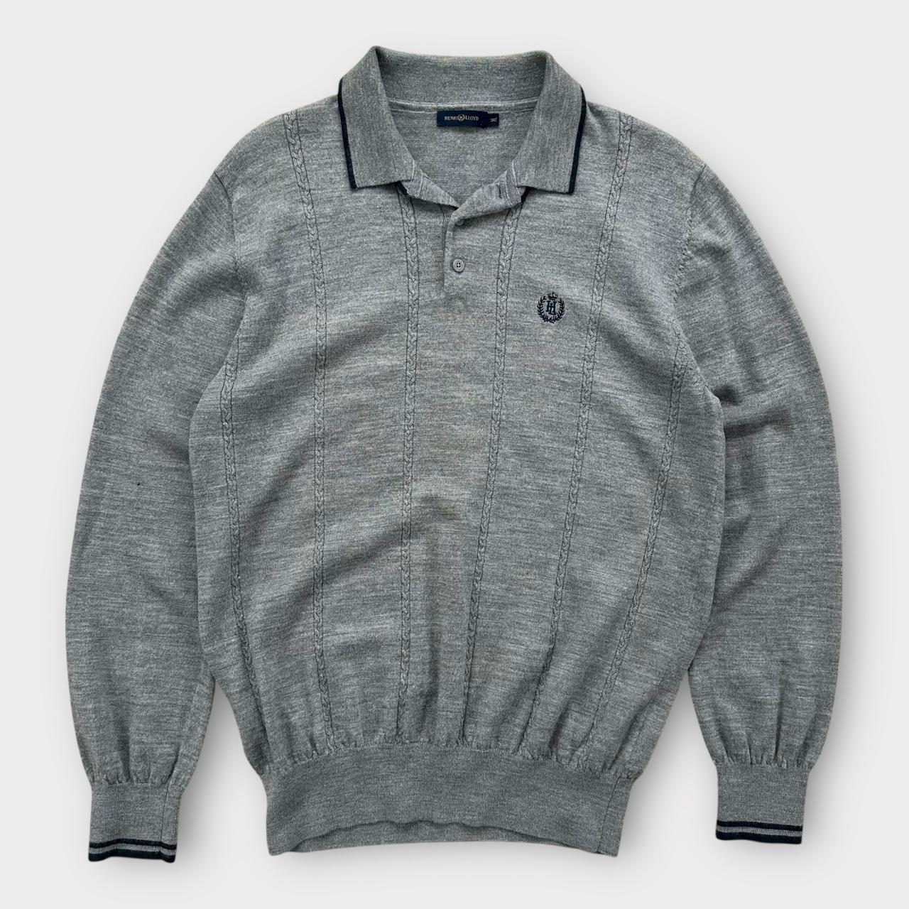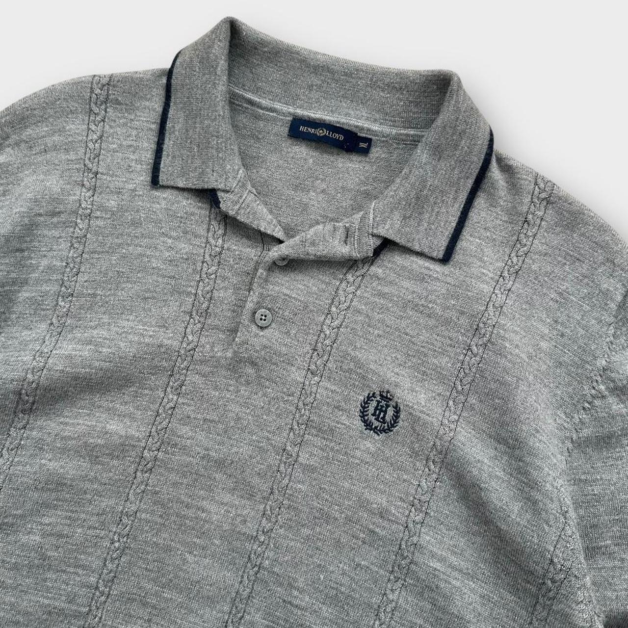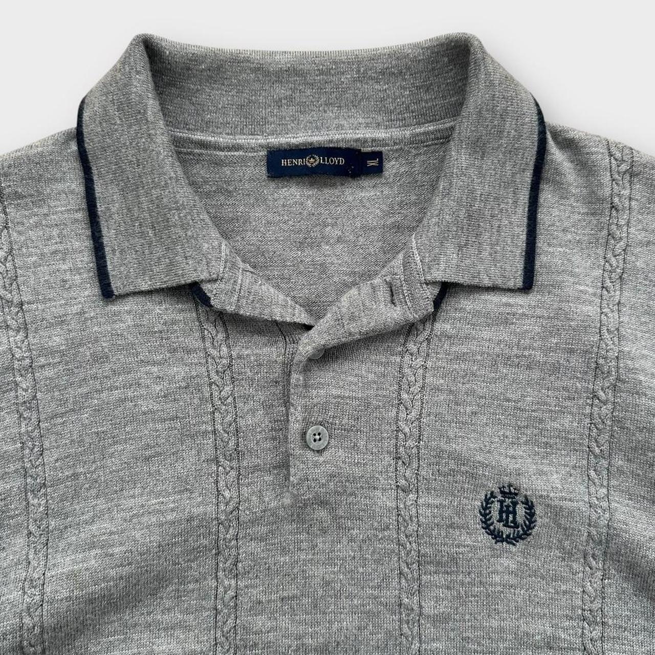 Vintage-Strickpullover von Henri Lloyd aus den frühen 2000er Jahren mit geknöpftem Kragen in Grau und gesticktem Logo auf der Brust