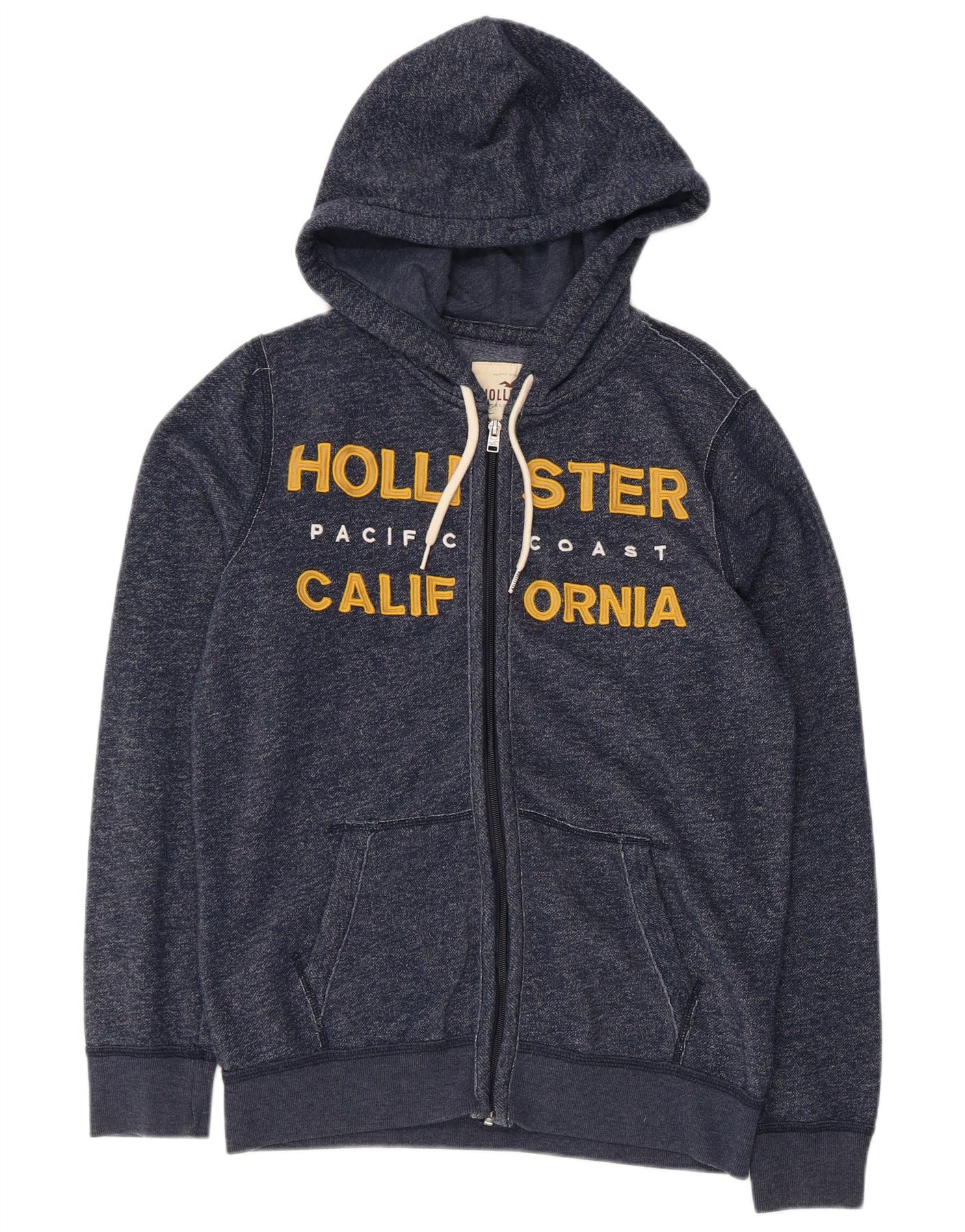 HOLLISTER Herren-Kapuzenpullover mit grafischem Reißverschluss, klein, marineblau gesprenkelte Baumwolle