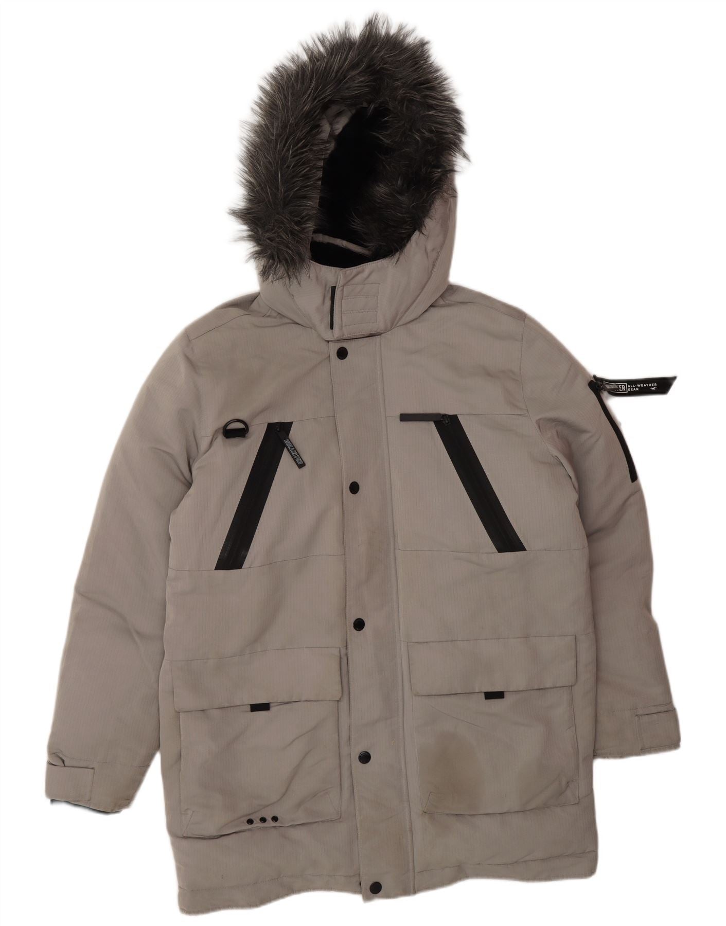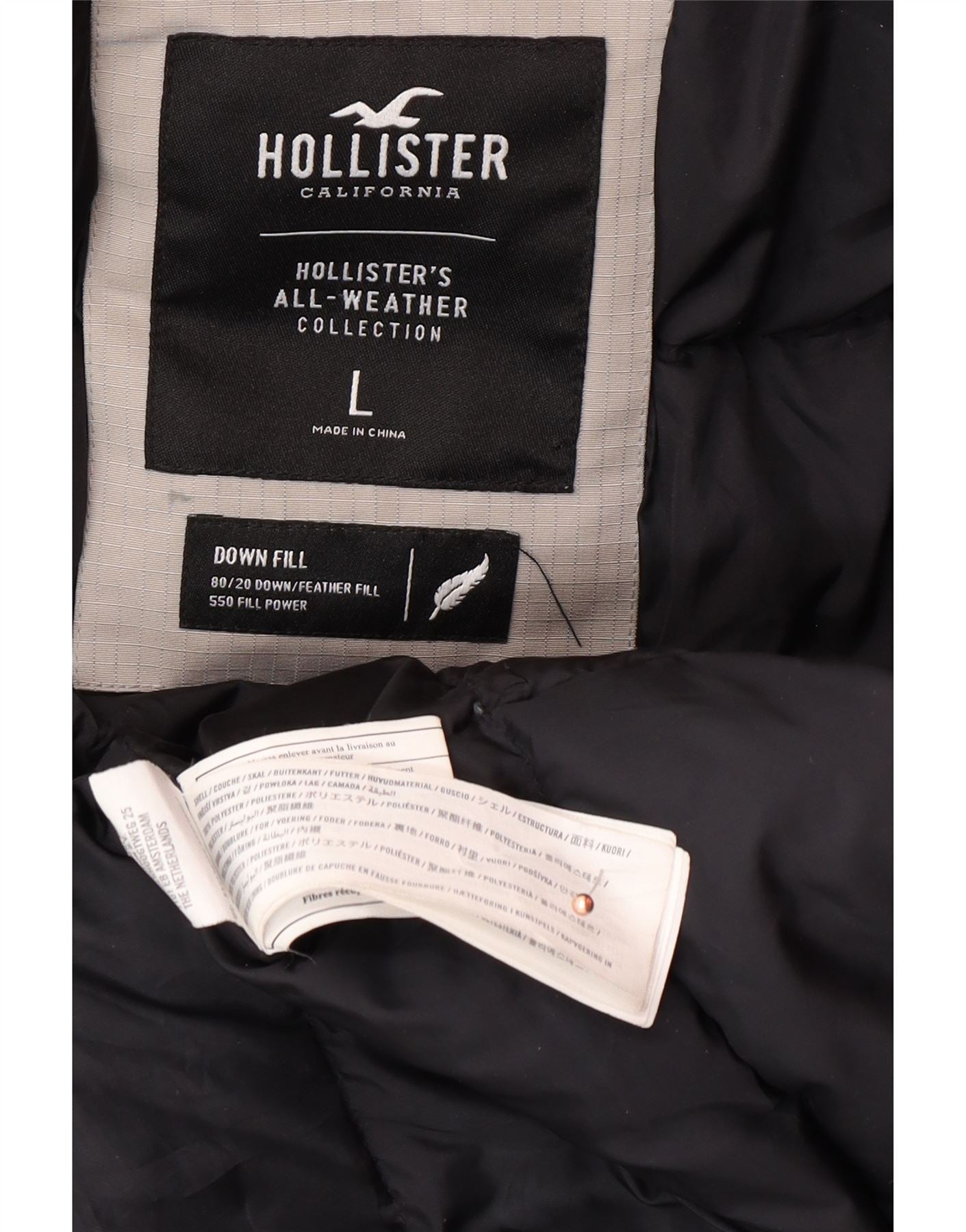 HOLLISTER Wattierte Herrenjacke mit Kapuze, UK 40, großes graues Polyester