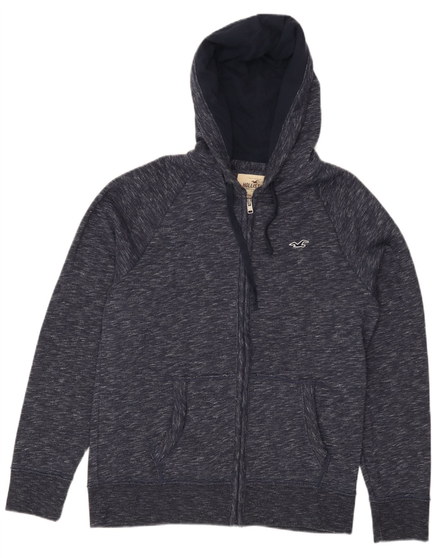 HOLLISTER Herren-Kapuzenpullover mit Reißverschluss, klein, marineblau gesprenkelte Baumwolle