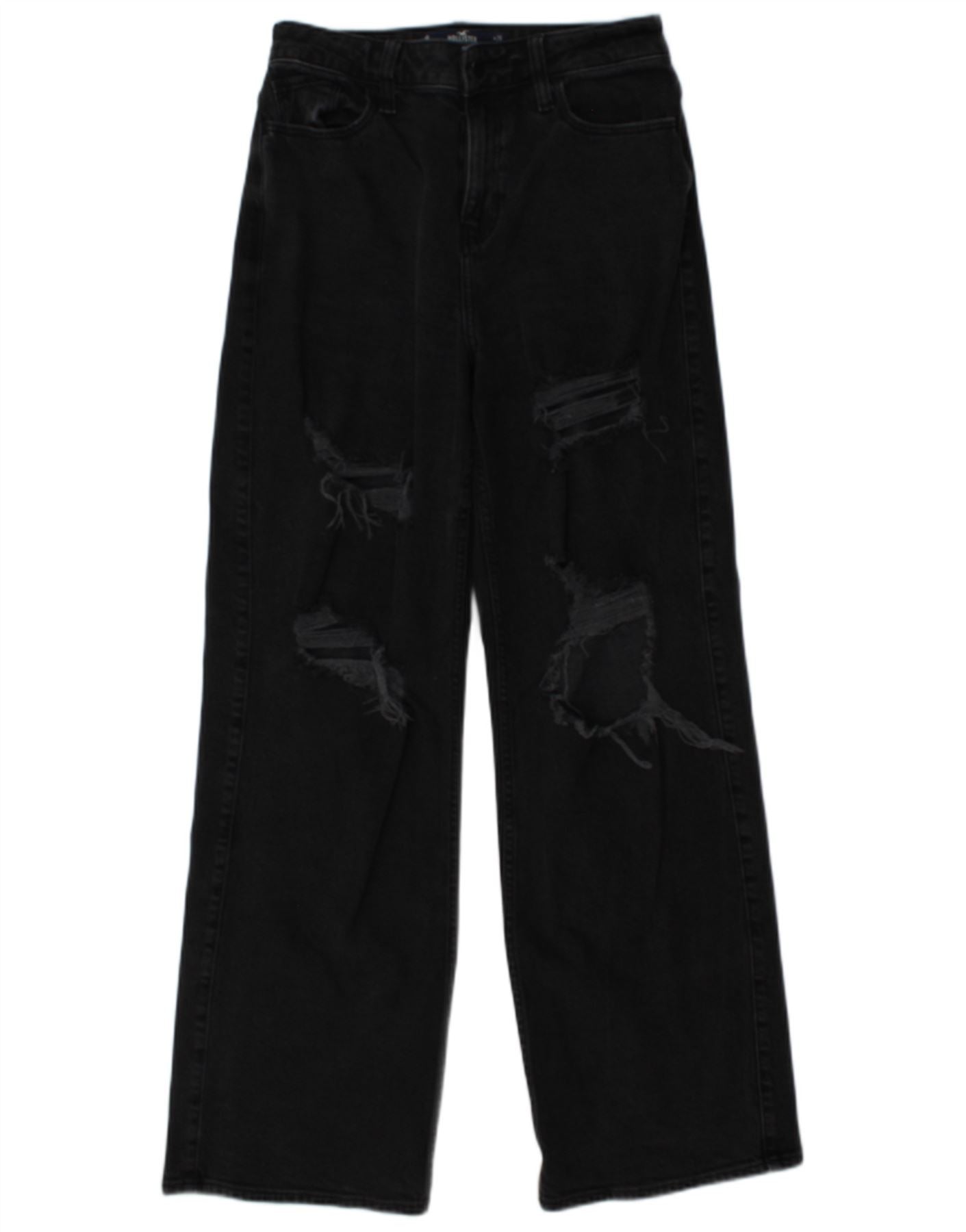 HOLLISTER Womens Baggy Distressed Straight Jeans US 3 Small W26 L32 Grey