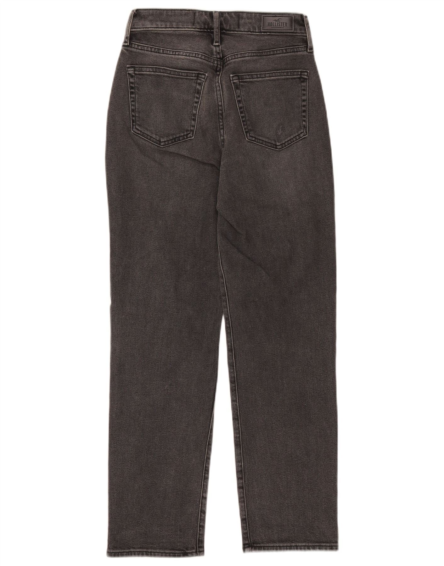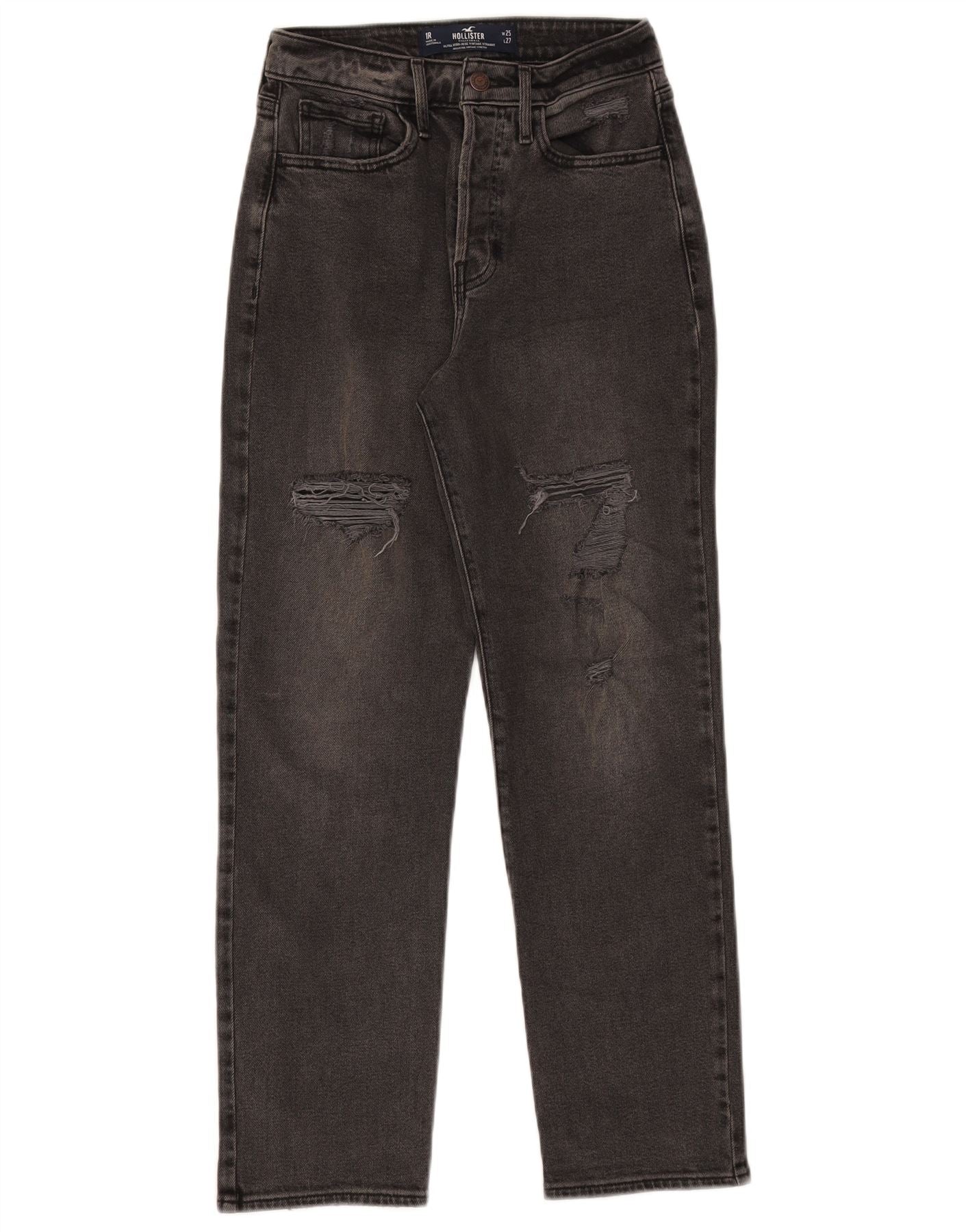 HOLLISTER Damen Distressed High Rise Straight Jeans W25 L27 Schwarze Baumwolle
