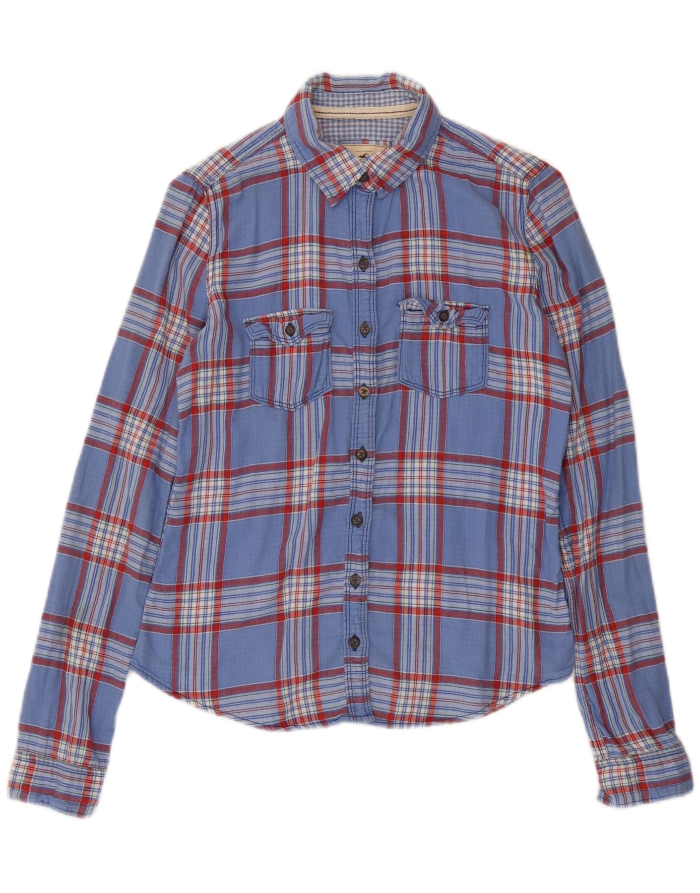 HOLLISTER Flanellhemd für Damen, UK 10, klein, blau kariert, Baumwolle