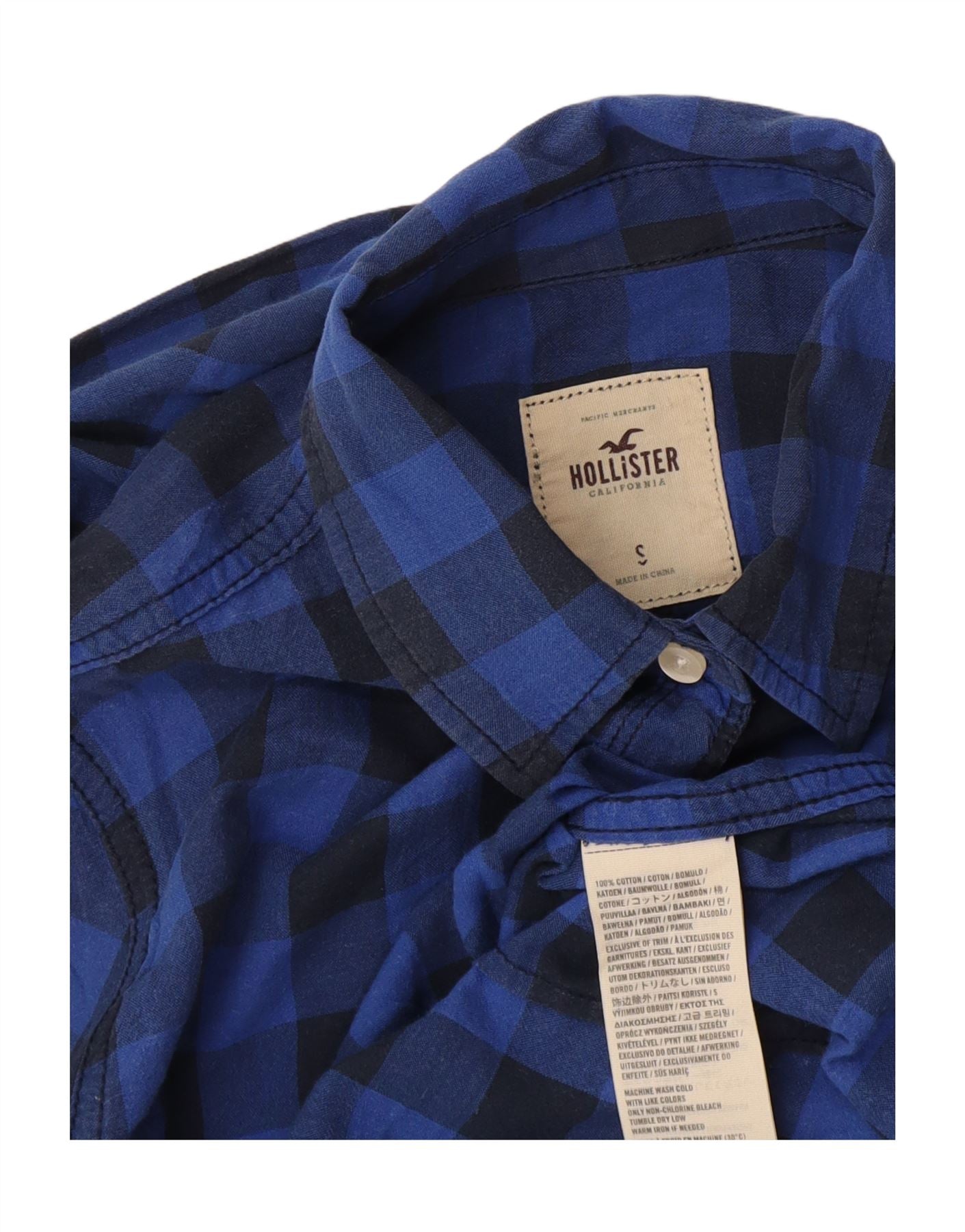 Hollister Womens Flannel Shirt UK 10 Small Blue Gingham Cotton