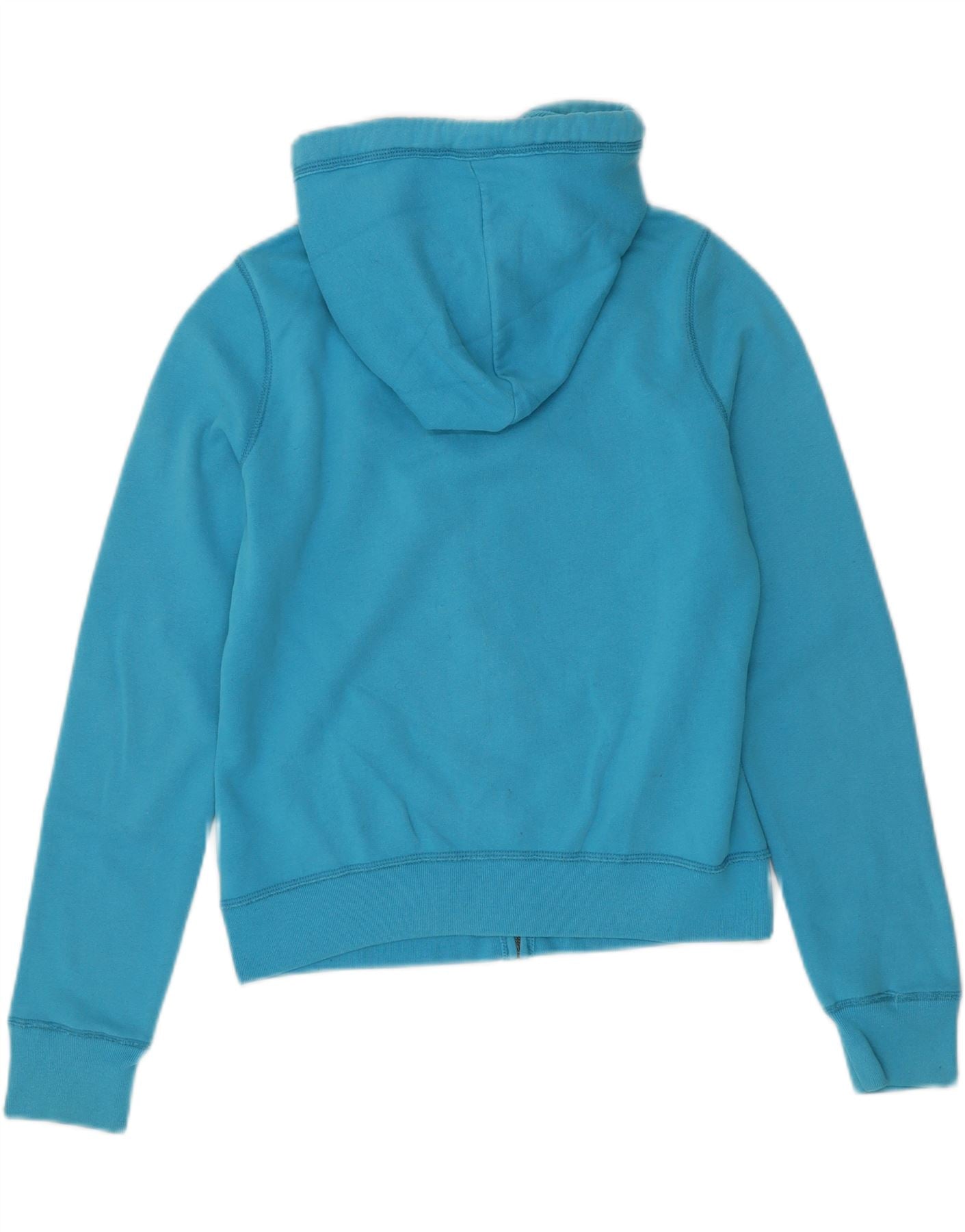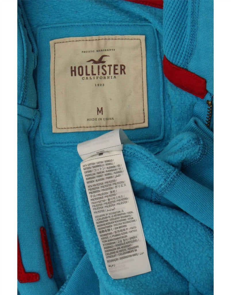 HOLLISTER Womens Graphic Zip Hoodie Sweater UK 14 Medium Blue Cotton