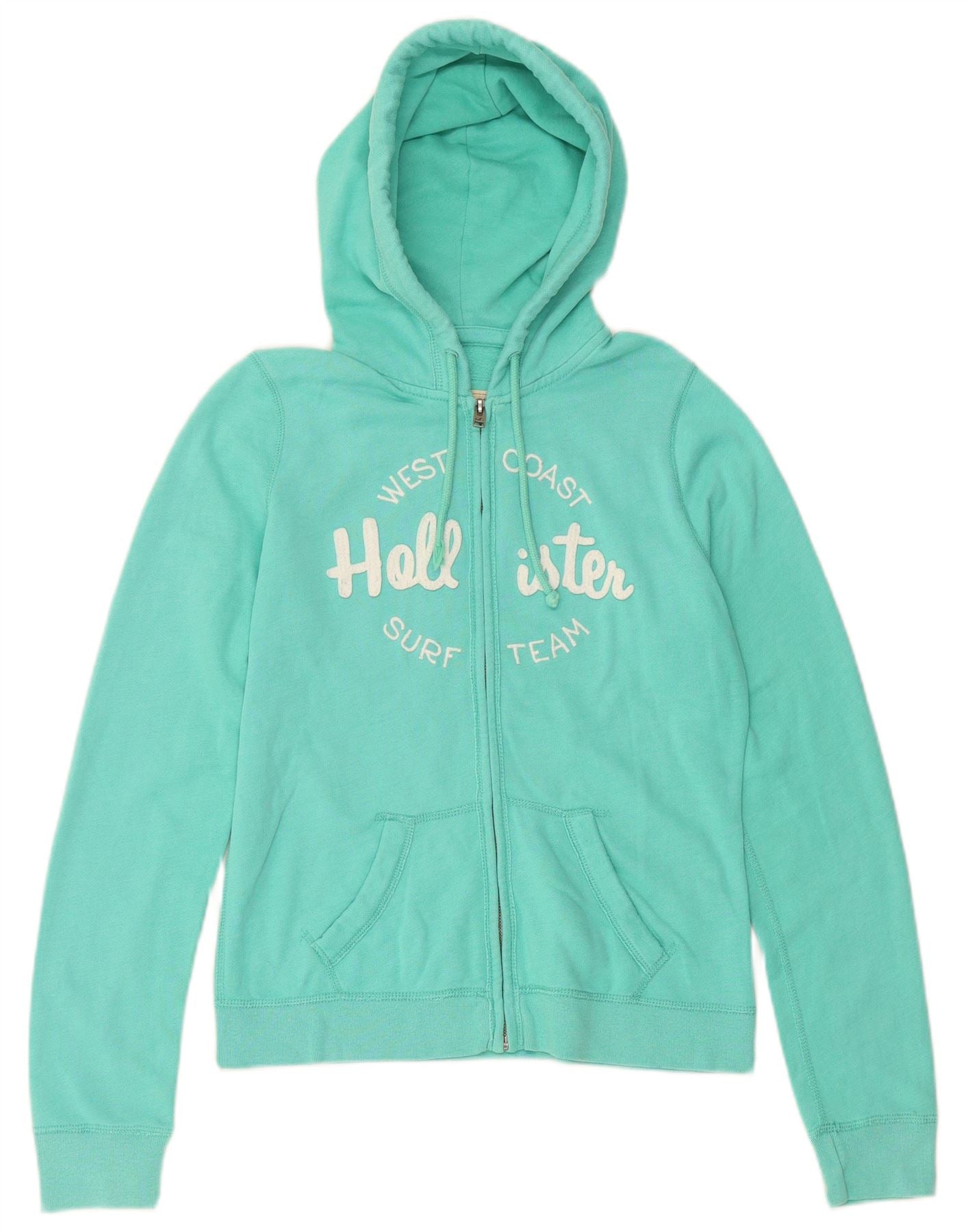 Home > Damen > Depop-Kleidung > HOLLISTER Womens Graphic Zip Hoodie Sweater UK 14 Mitteltürkis Baumwolle