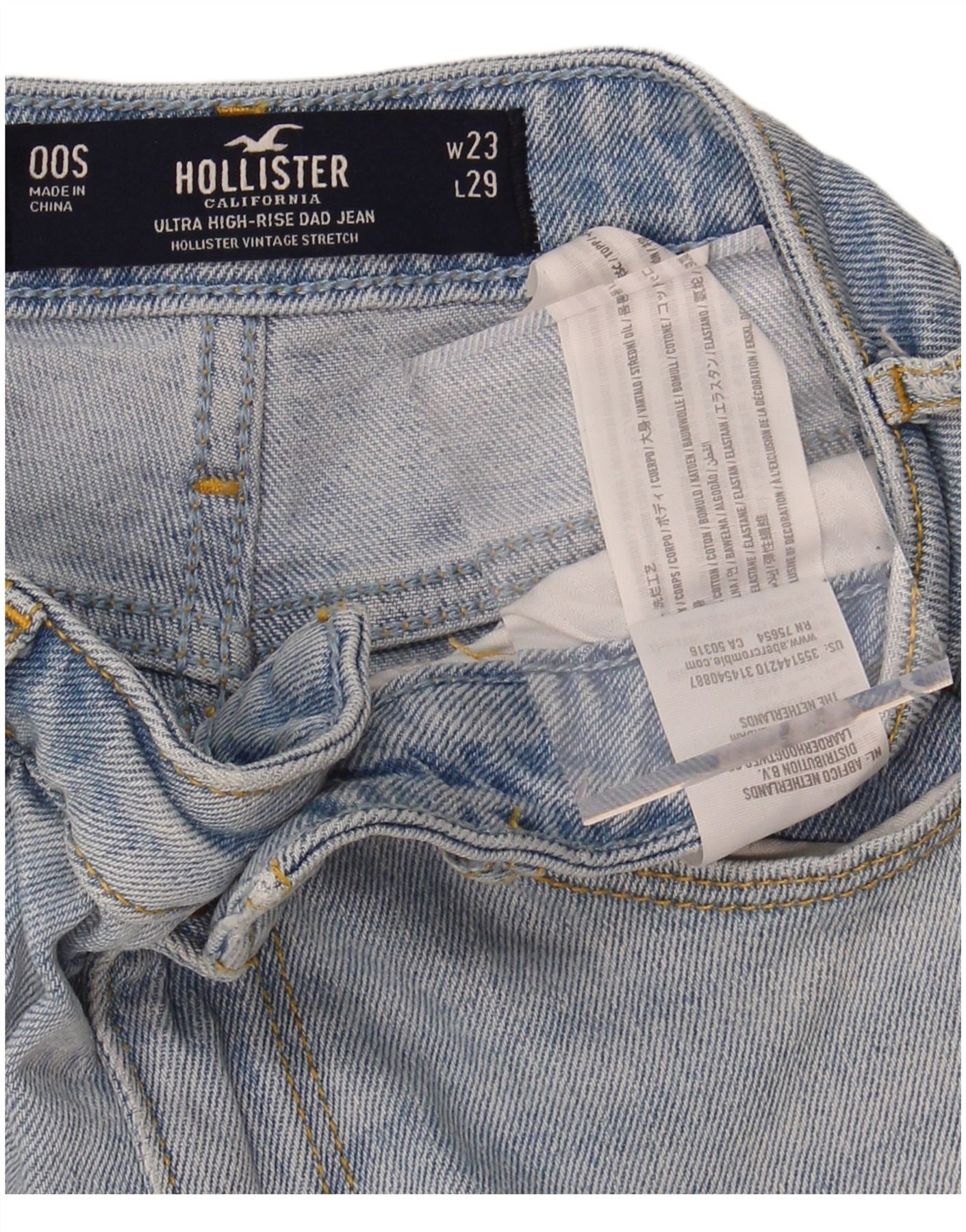 - AI Description: This Hollister womens loose jeans are crafted from blue denim, a blend of 99 percent cotton and 1 percent elastane, ensuring comfortable stretch. They feature a super high-rise waist and a relaxed fit, embodying a retro style. The button closure provides a classic touch. Practical pockets enhance functionality. The straight leg design ensures a timeless silhouette, perfect for everyday comfort.