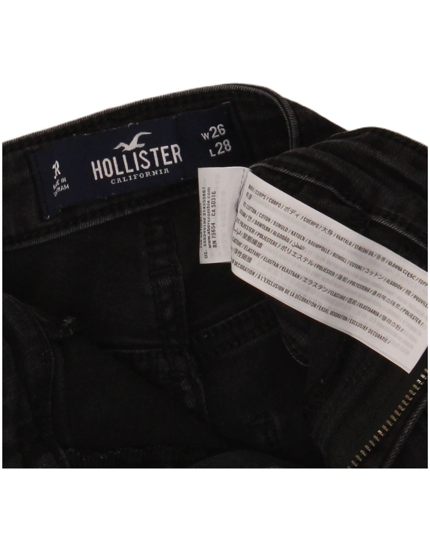 HOLLISTER Damen High Rise Skinny Jeans W26 L28 Schwarze Baumwolle