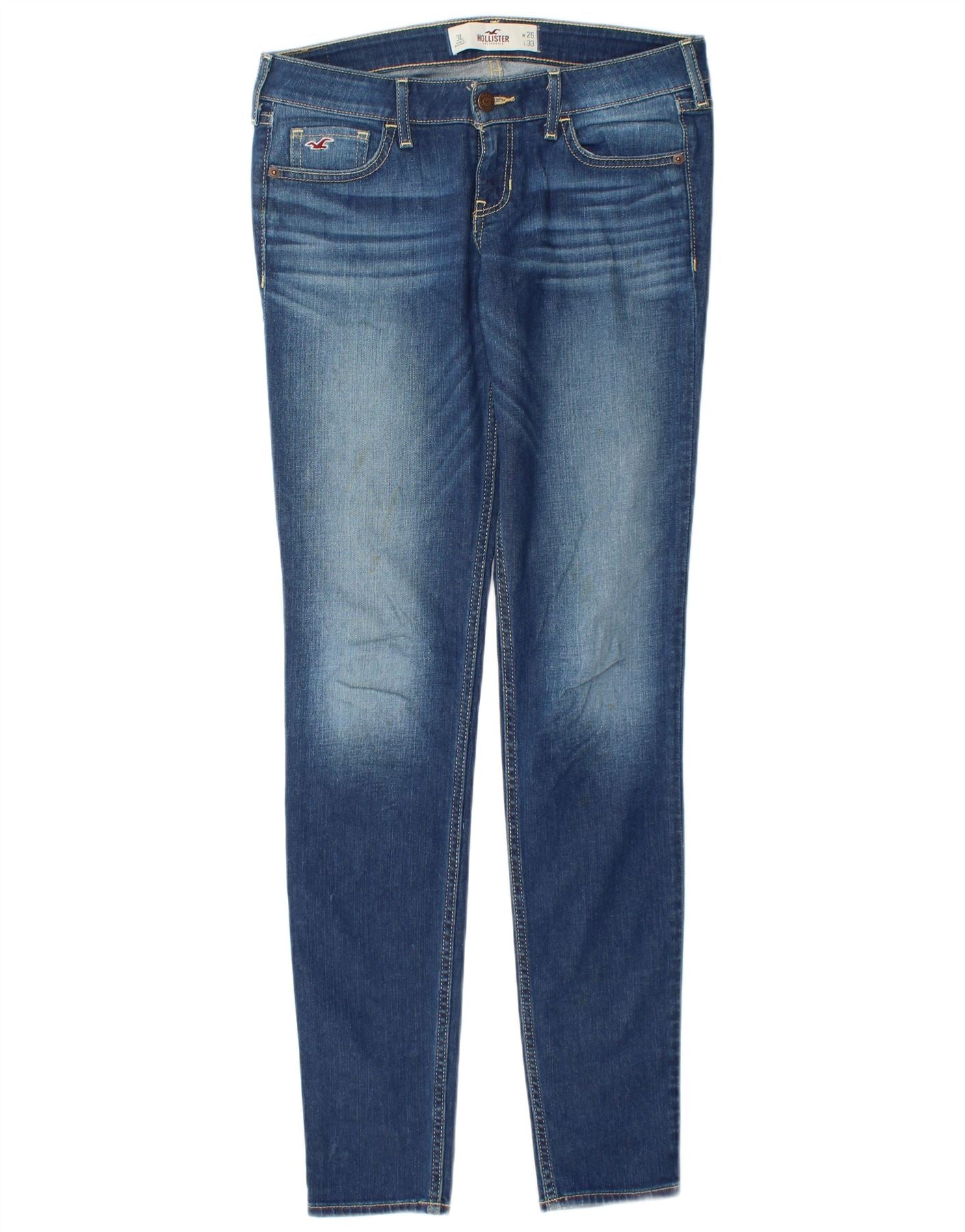 HOLLISTER Damen lange Röhrenjeans US 3 XS W26 L33 Blaue Baumwolle