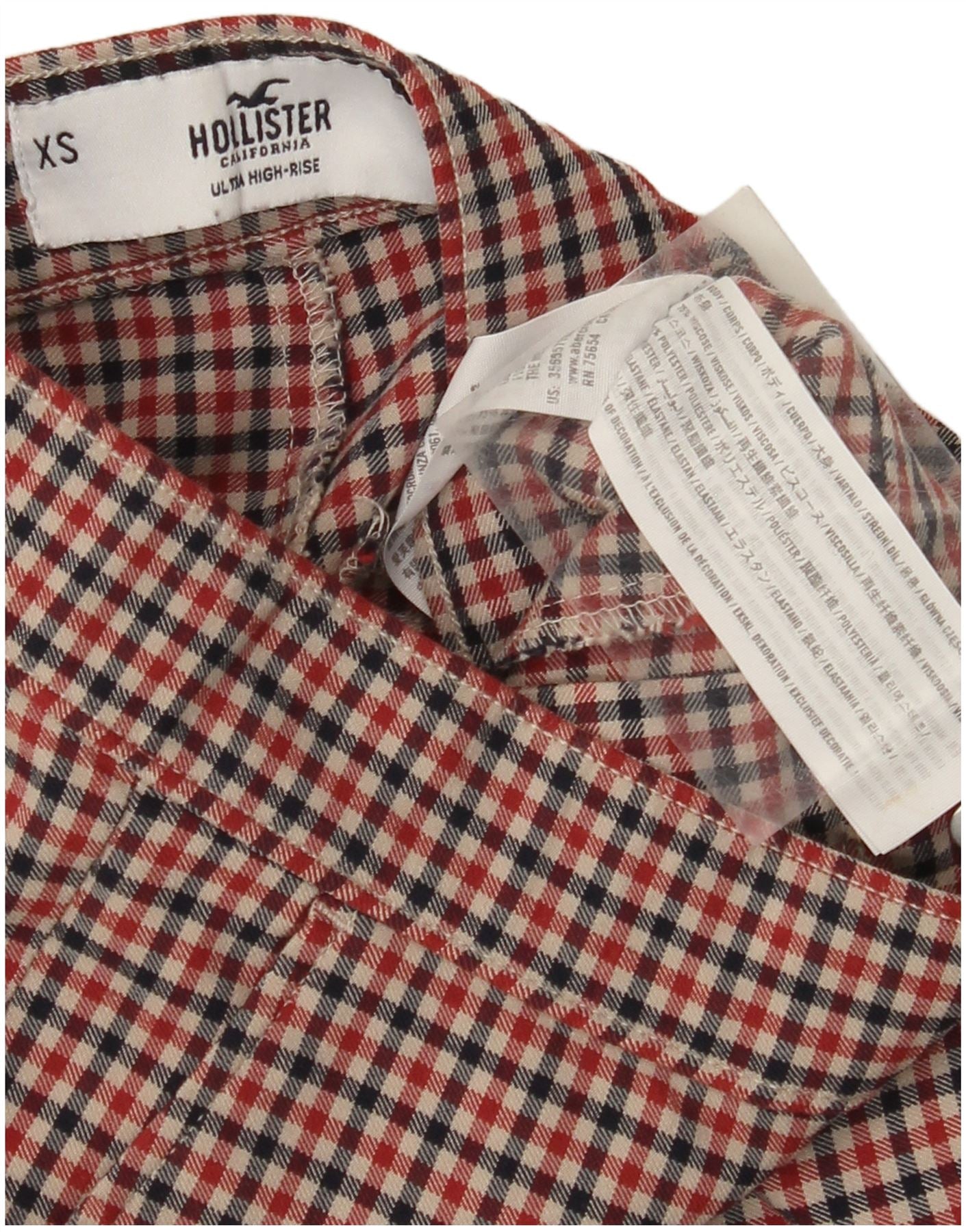 HOLLISTER Damen Skinny Chino-Hose XS W24 L28 Rot karierte Viskose