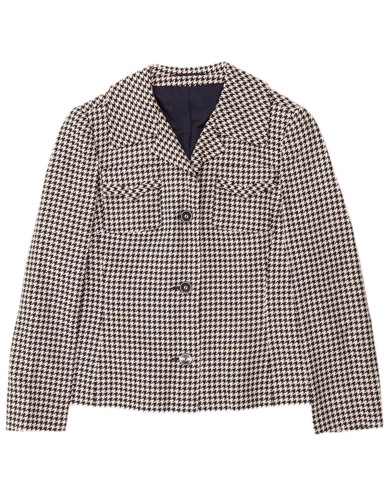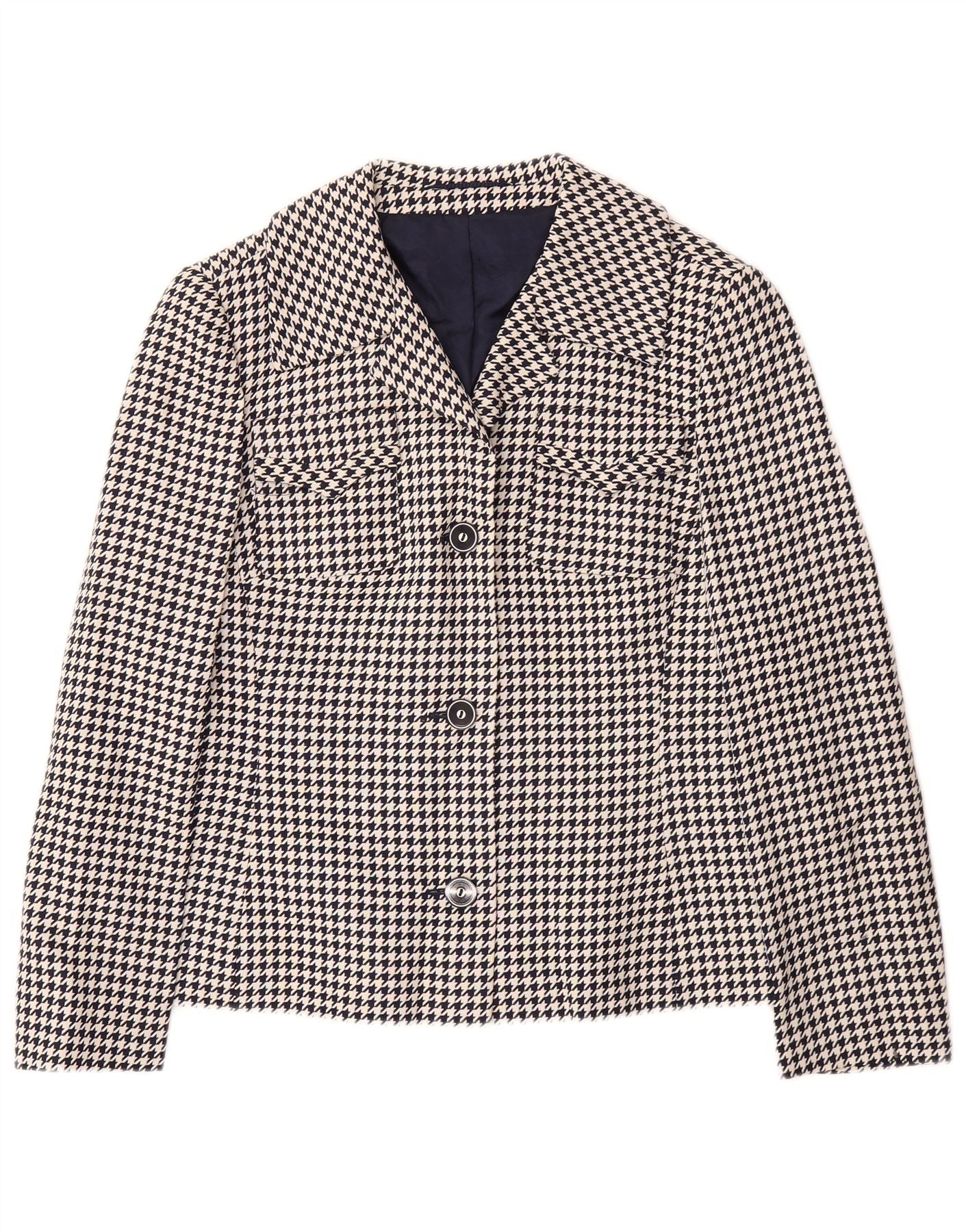 HORST MANDEL Womens Blazer Jacket EU 38 Medium Navy Blue Houndstooth