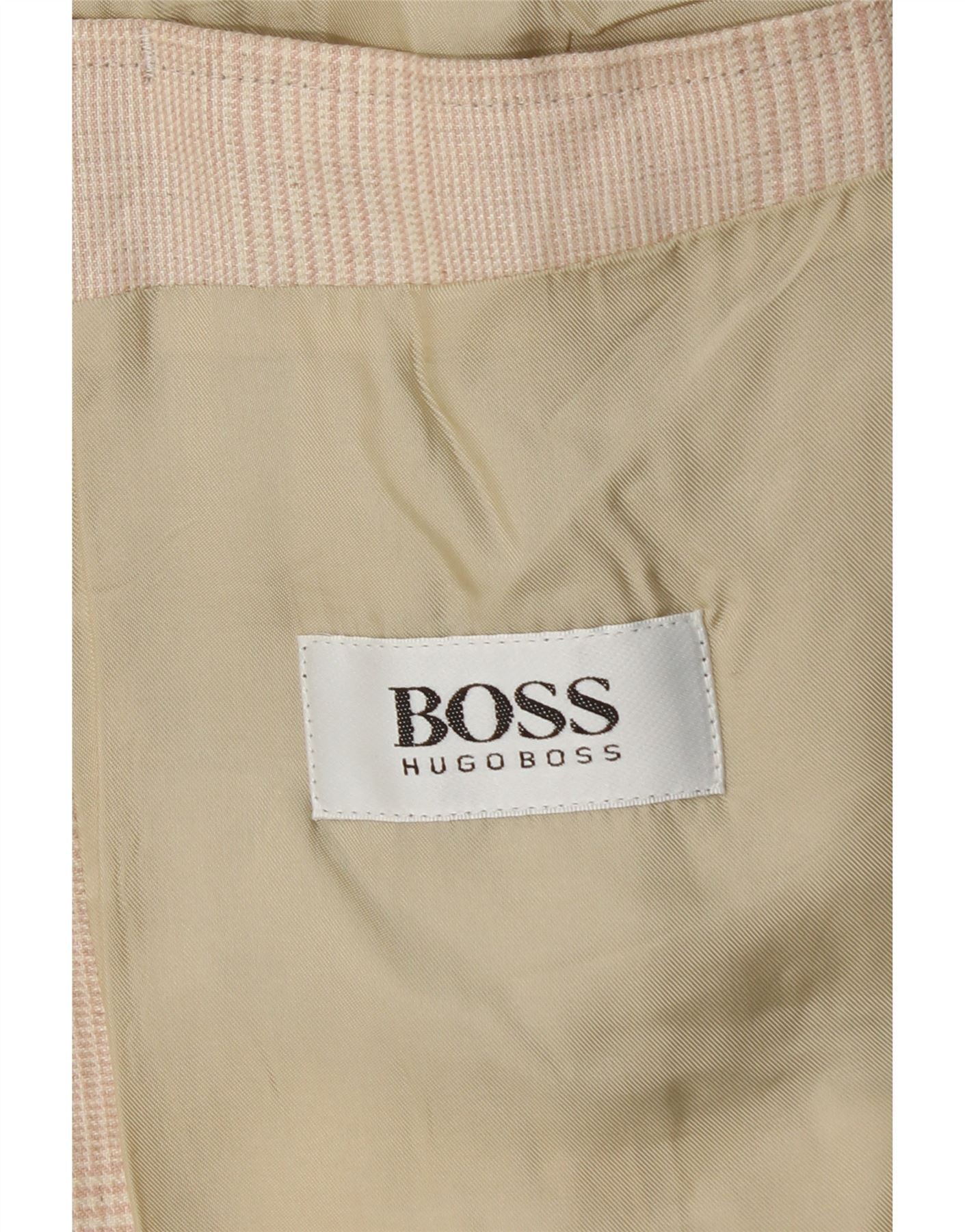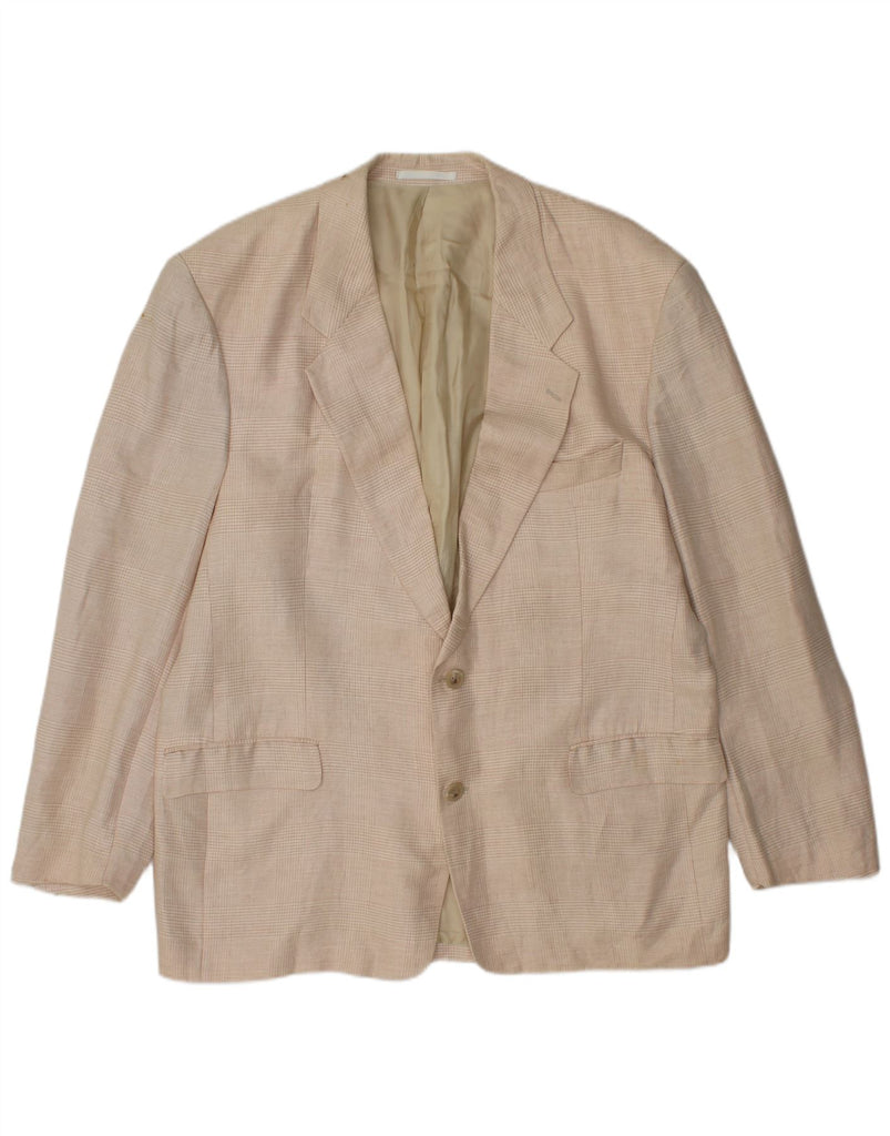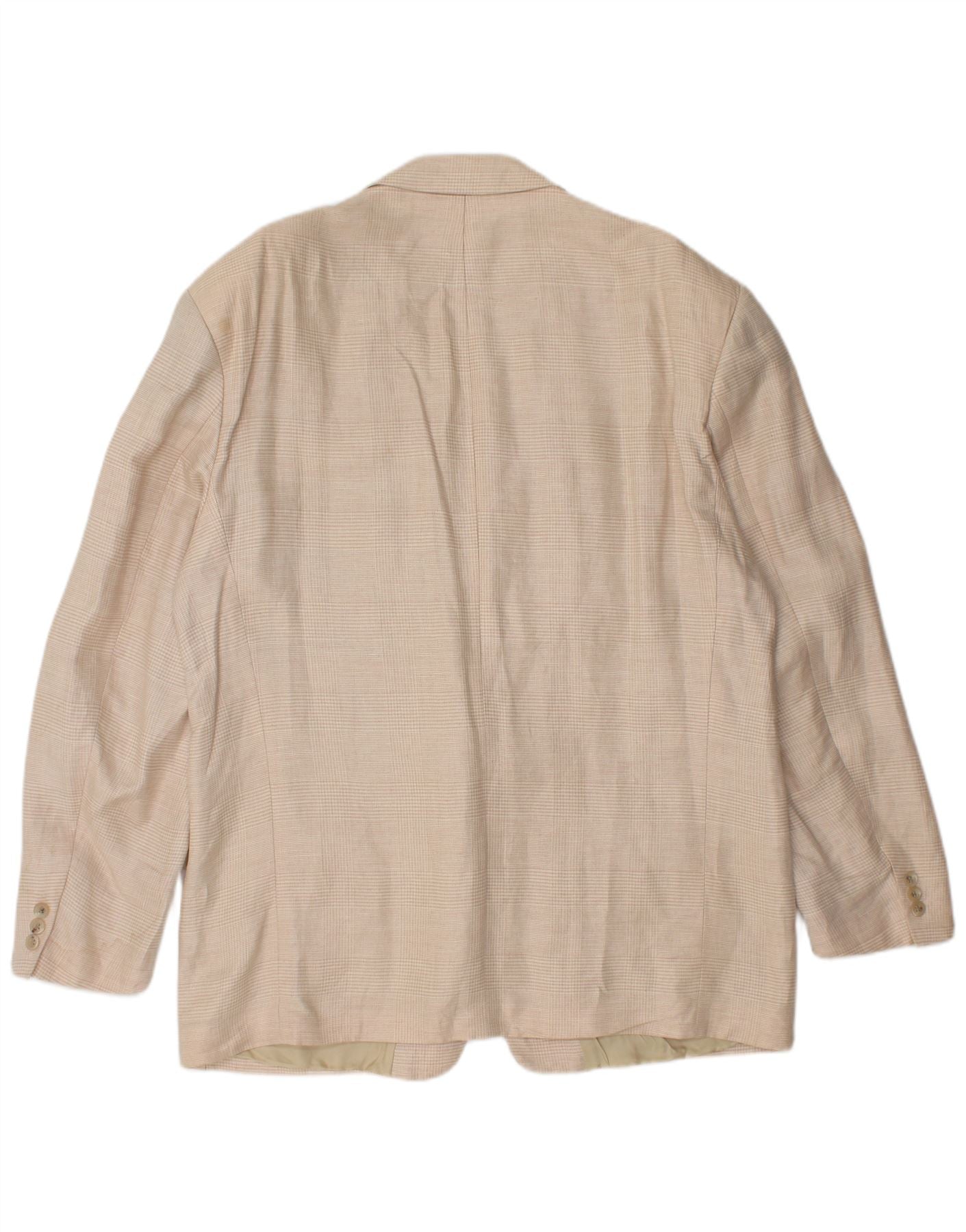 HUGO BOSS Herren 2-Knopf-Blazerjacke EU 56 3XL Beige kariertes Leinen