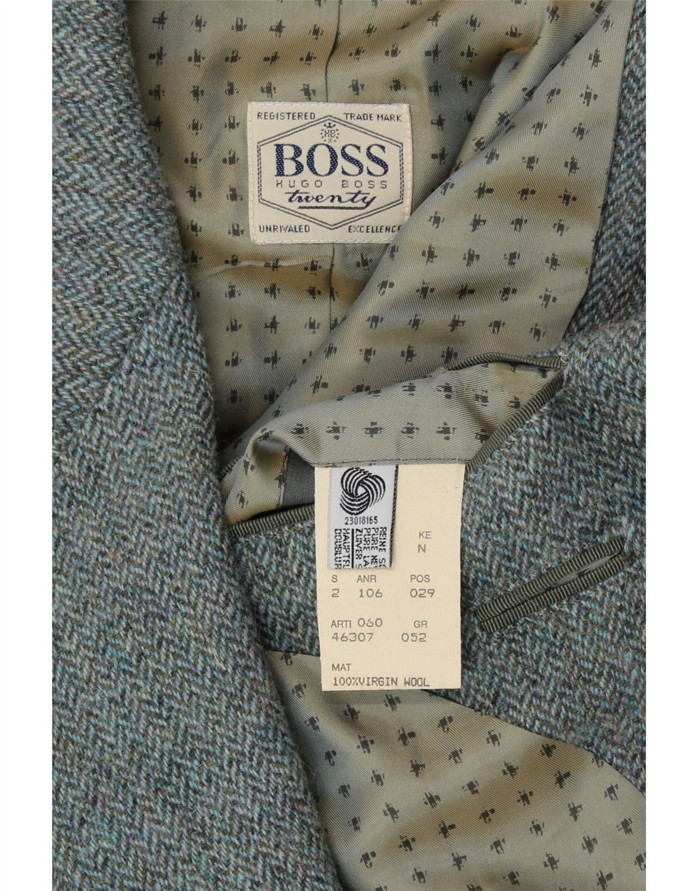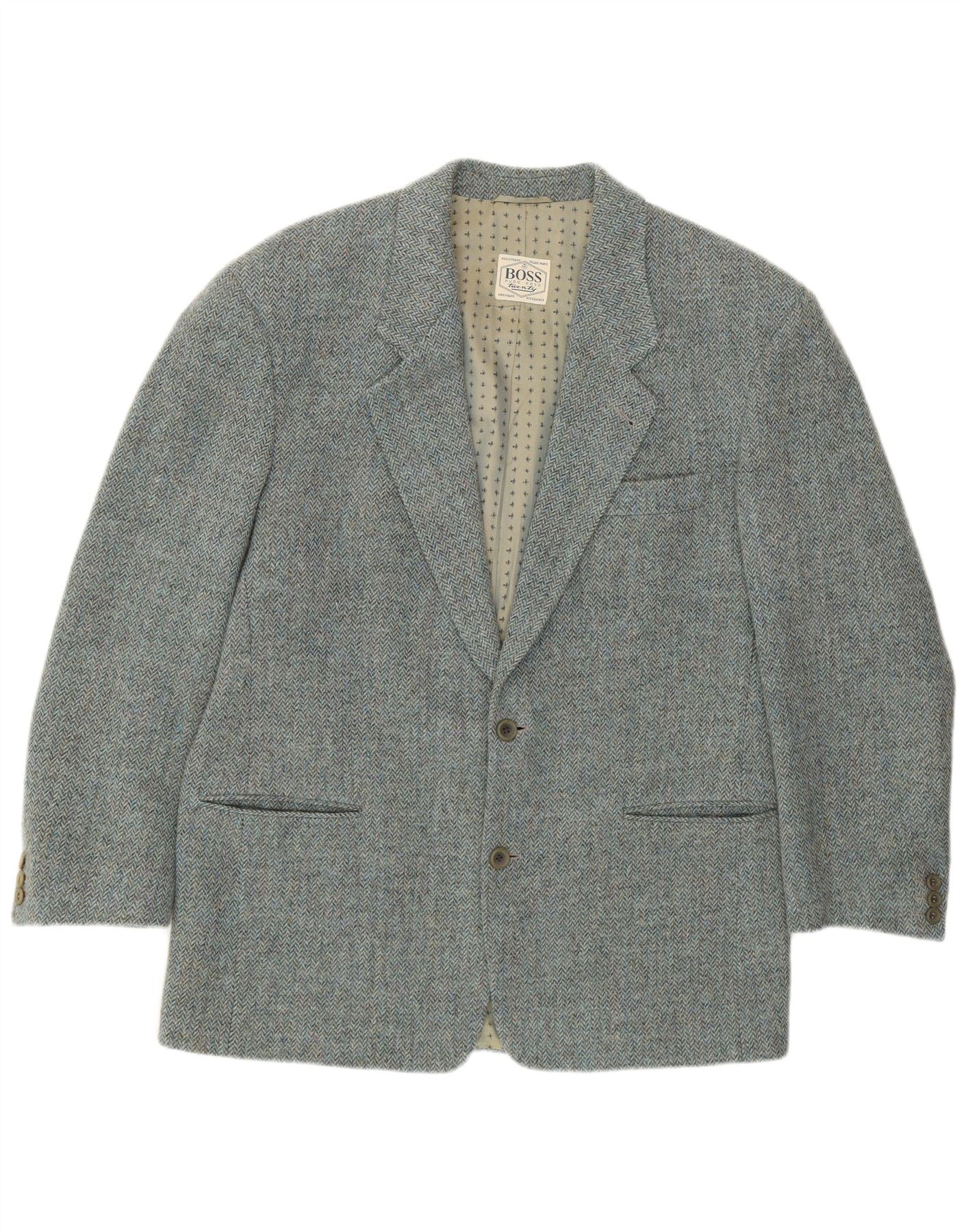 HUGO BOSS Herren 2-Knopf-Blazerjacke IT 52 XL Blaue Fischgräten-Schurwolle