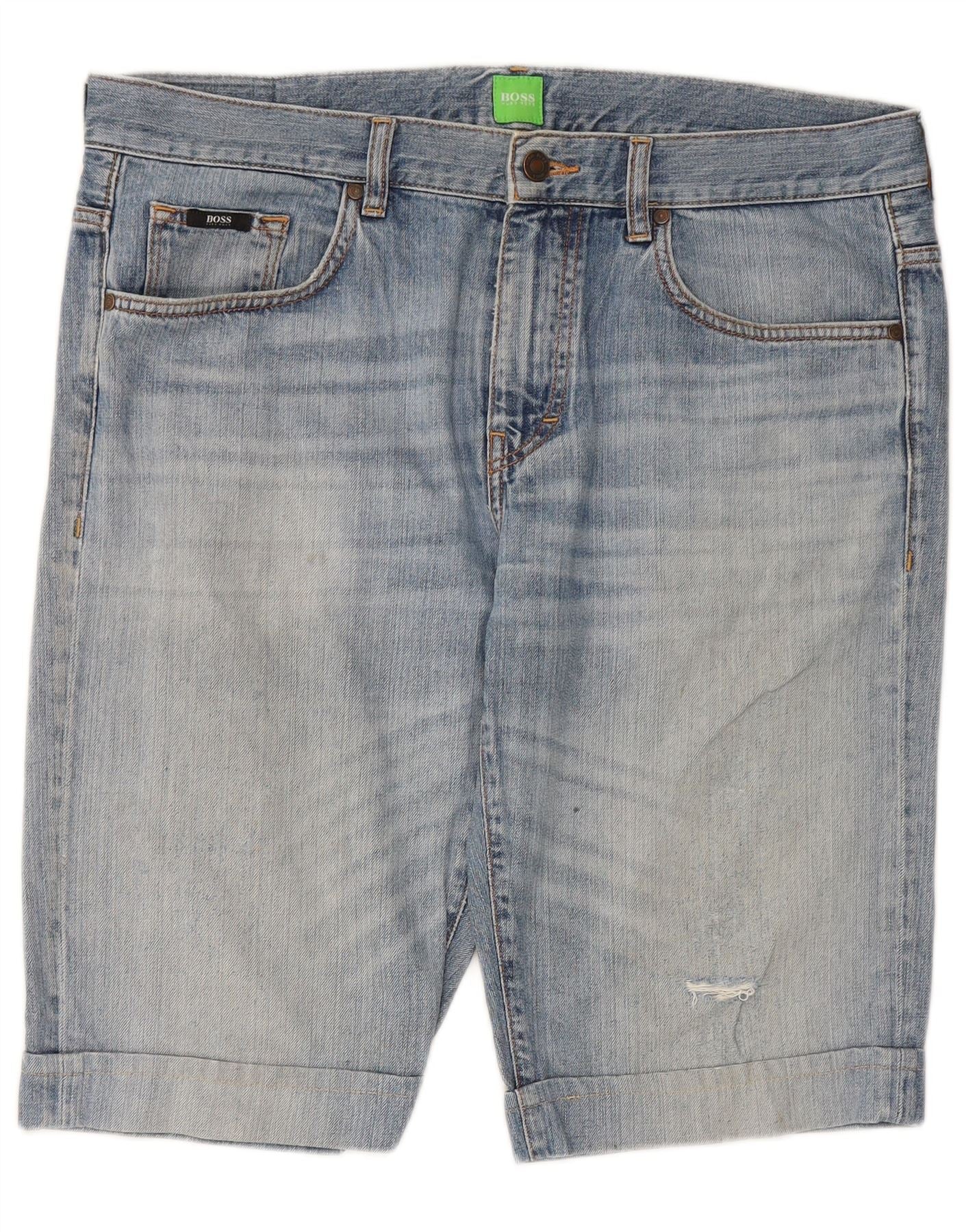 HUGO BOSS Herren Distressed Denim Shorts W36 Large Blau